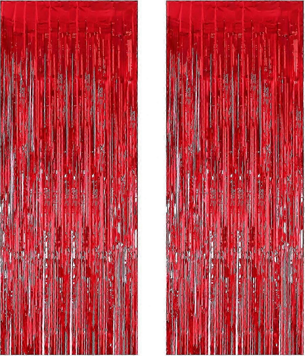 2 Pack 3.3 ft x 9.8 ft Foil Curtains Metallic Fringe Curtains Shimmer Curtain Photo Backdrop for Halloween Christmas Birthday Party Wedding