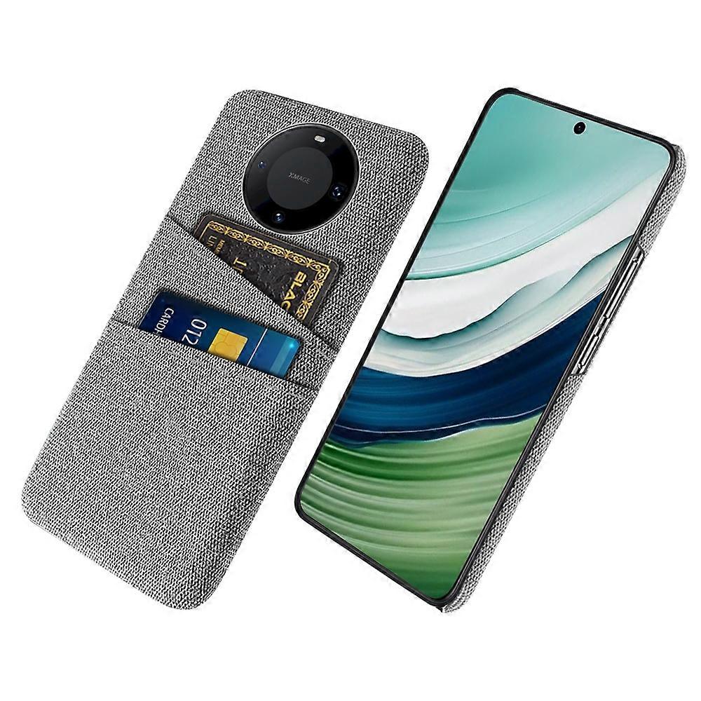 Dual Card Holder Slim Cover for Huawei Mate 60,Hard PC+Cloth Phone Case Shell - Light Grey