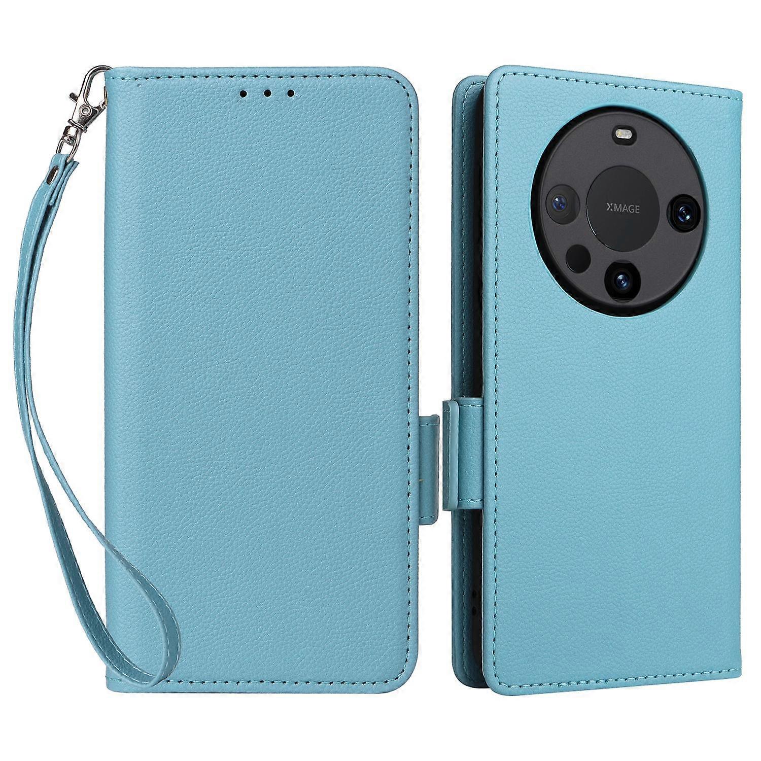 For Huawei Mate 60 Cover Litchi Texture Wallet Stand Leather Phone Case with Strap - Baby Blue