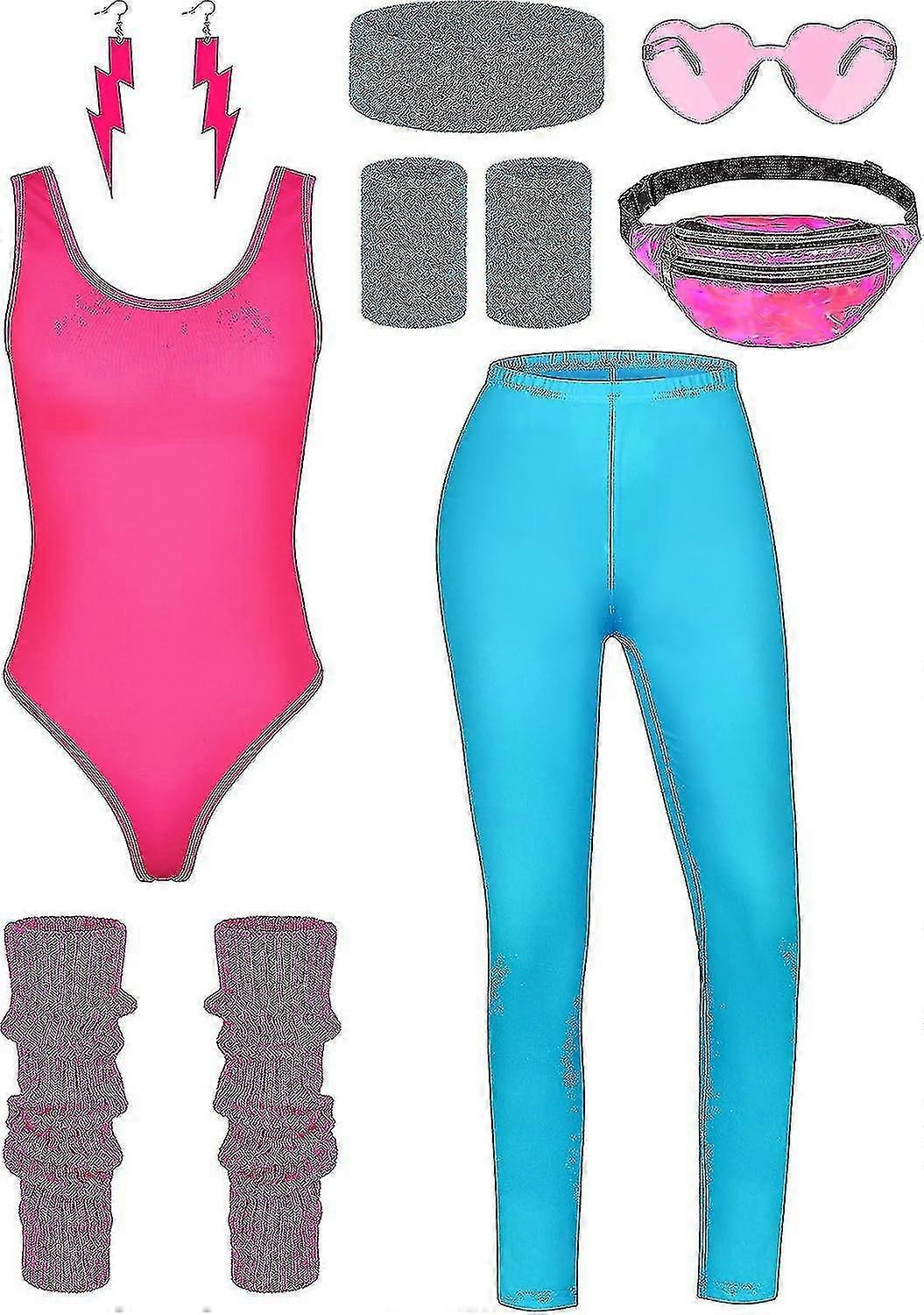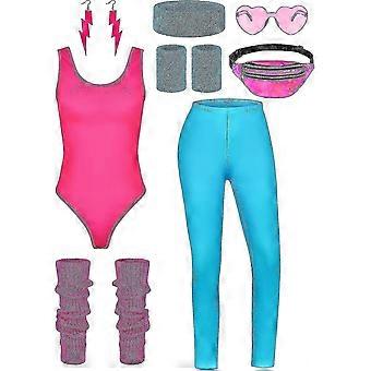 8 Pieces Women 80s Workout Costume Halloween 90s Outfit Accessories Set Leotard Bum Bag Glasses Headband Leg Warmers - DSW