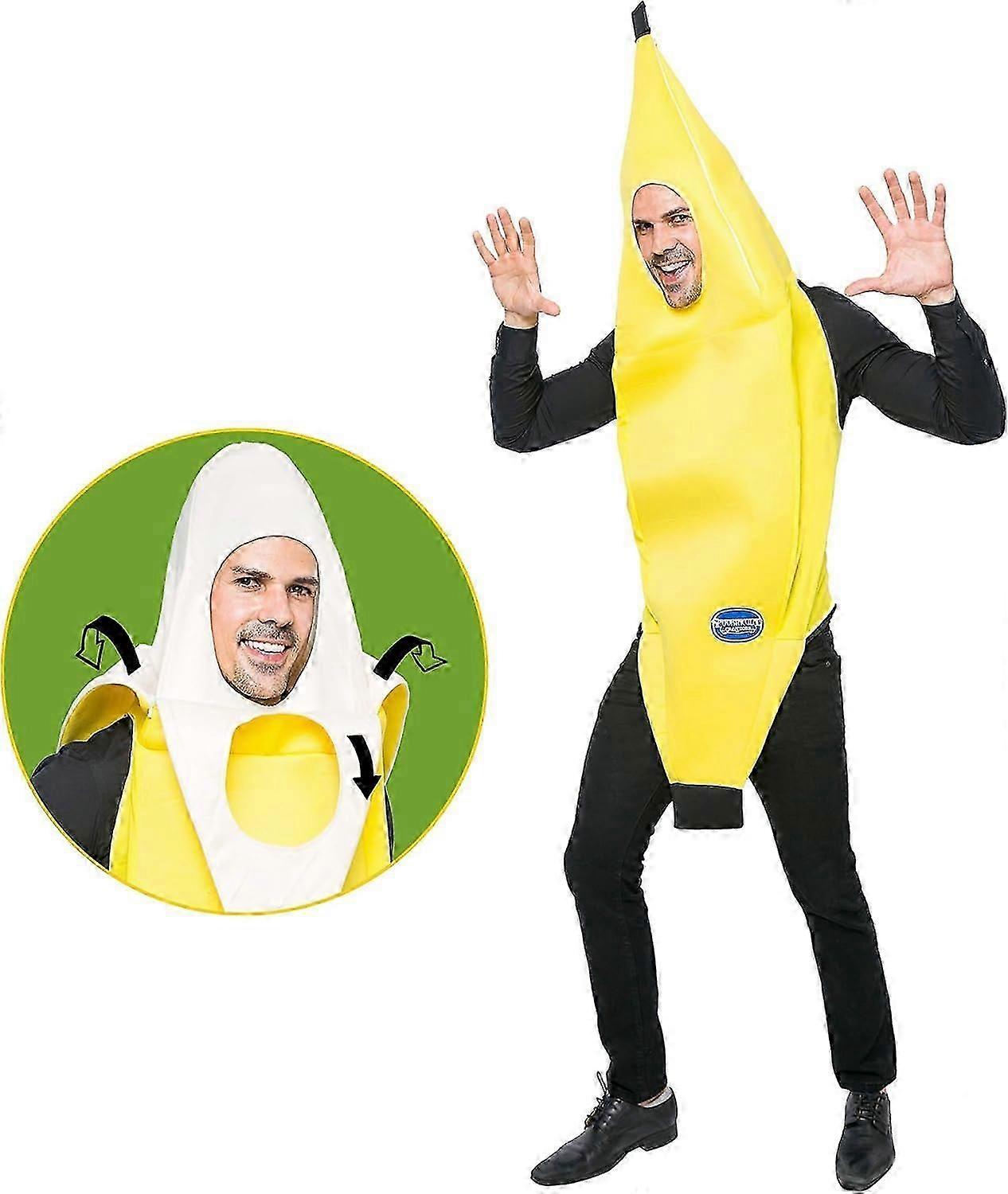 Banana Costume for Men and Women, includes One-Piece Pull over Costume Tunic with a Peelable Top Design! A-Peel-ing Top Unique Design. Unisex Banana Outfit Halloween Costume Deluxe Set. Realistic Looking, Super Durable. Superior Quality. Polyester. Hand Wash. Safety Test Approved. Banana Shell Print Continues on Back. Super Value Pack for Food Adult Banana Costume Role Play and Party Supplies. Excellent for Halloween Costumes Dress Up Parties, Bananas Suit Costume Mexican Costume Theme Parties, Funny Food Theme Party Costumes Adult Accessories, Mexican Banana Costume, Lightweight Banana Costume, Food Halloween Costumes Adult, Mens and Womens Banana costume, Games Role Playing, Thanksgiving, Christmas, Trick or Treat Costume, Theater Plays, Pretend Play, Outdoor Activity, Playtime Every day and More! Size: Standard and X-Large