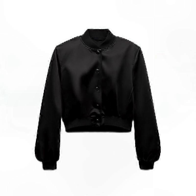 Autumn Long Sleeve Silk Satin Jacket for Women Round Neck Casual Outerwear Bomber Style Female Lightweight Coat