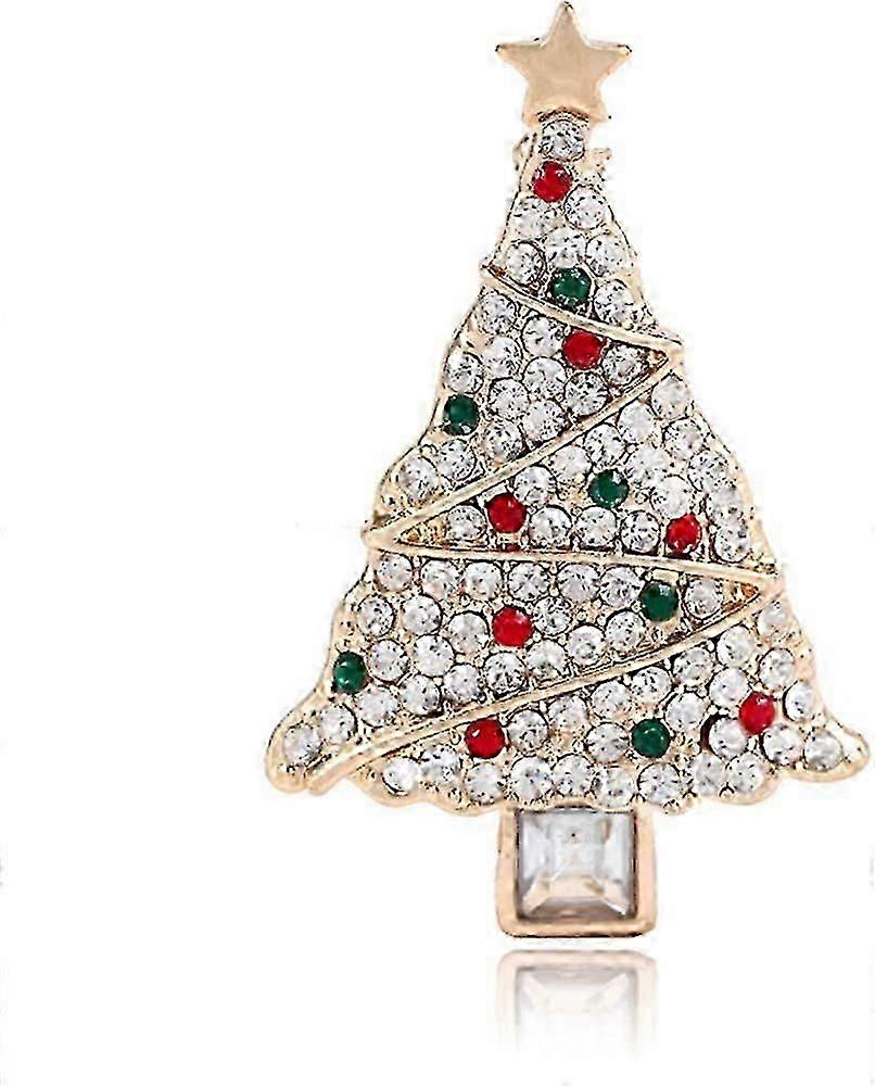 Christmas Tree Brooches for Women Girls Alloy Gold Tone Vintage Fashion Colorful Austrian Crystal Rhinestones Charm Brooch Pin Dress Accessories - DSW