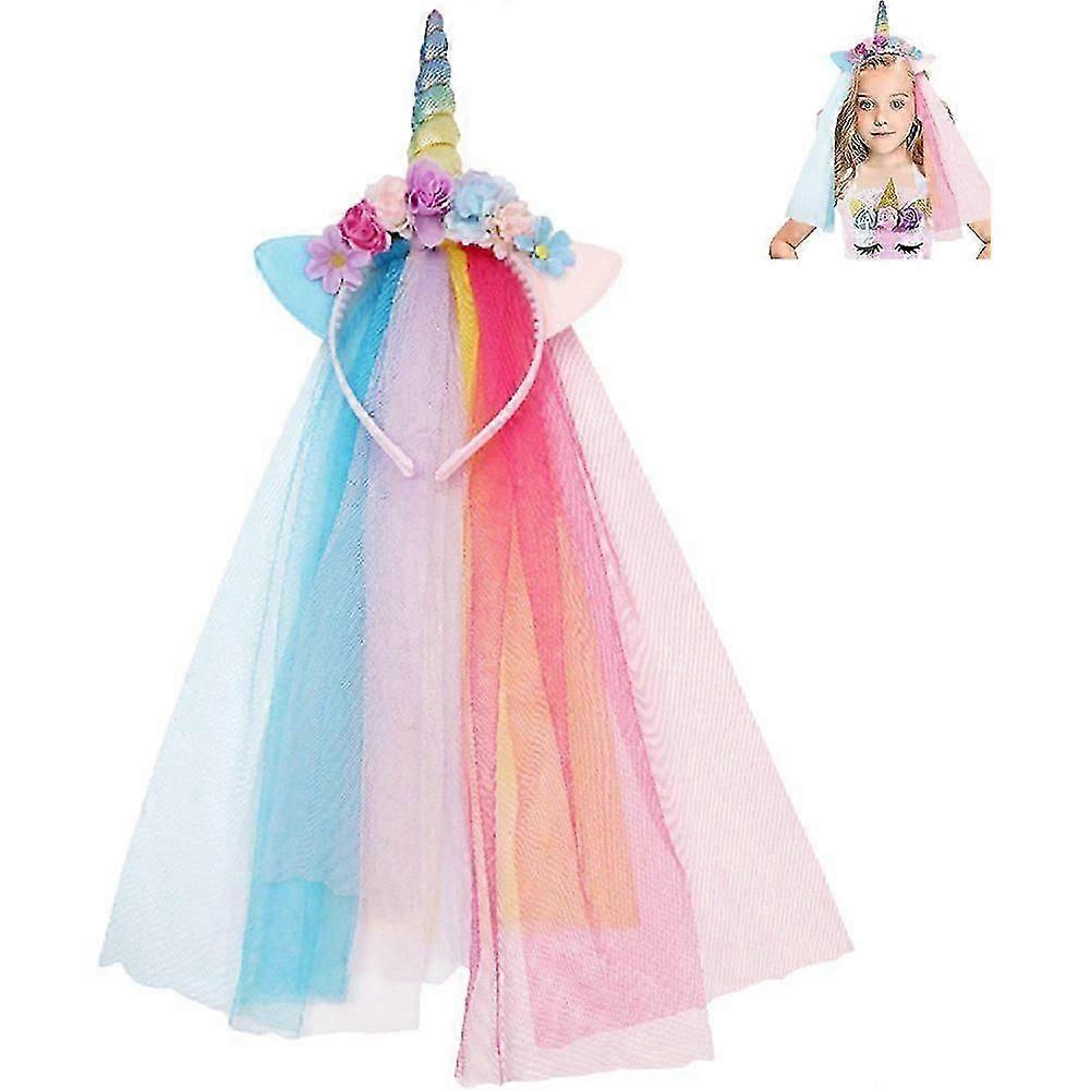 Einhorn Haarreif Mdchen mit Tll, Regenbogen, Haarreif, Kinder Geburtstag Party Dekoration Geschenke, fr Halloween, Weihnachten, Geburtstag, 1 Stck - D