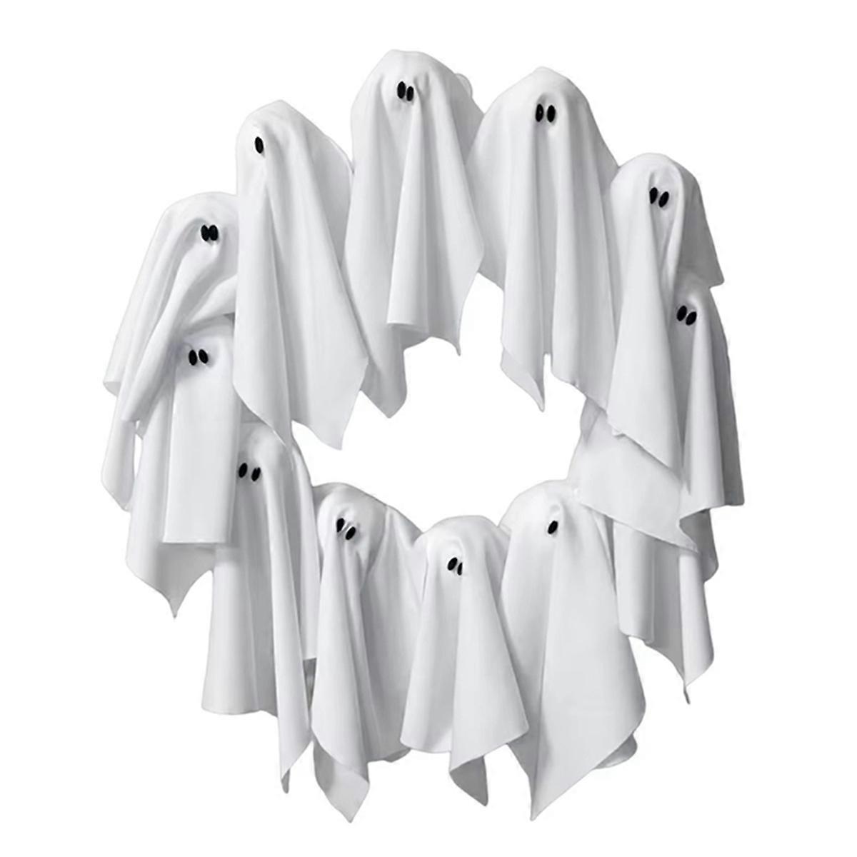 Ghost Wreath, 12 LED Light-Up White Ghost Garland, Spooky Indoor & Outdoor Hanging Decoration for Fr