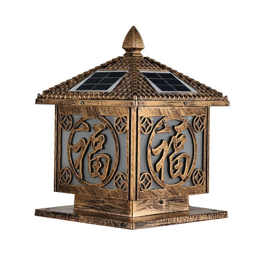 LED Solar Post Light Outdoor Traditional Waterproof Aluminum Glass Pillar Lamp Pier Mount Lantern Garden Backyard
