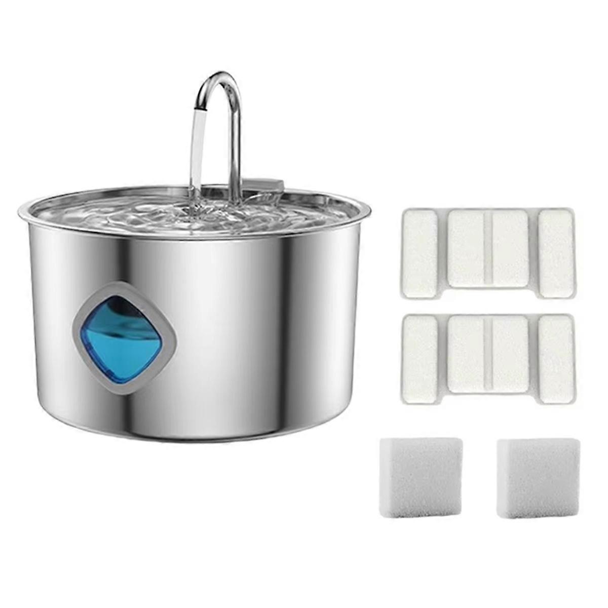 1.Wireless and Stainless Steel Design: Crafted from high-quality 304 stainless steel, the cat water fountain dispenser ensures safe and fresh drinking while preventing issues like black chin. The wireless design offers flexibility and easy installation, making it convenient to place the dog water fountain anywhere for your feline friend's hydration. 2.3.2-Liter Large Capacity, Less Refilling: With a capacity of up to 3.2 liters, this filtered water fountain provides up to 8 days of hydration, ideal for busy pet owners or during outings, ensuring your beloved pet always has access to fresh water. 3.Advanced Quadruple Filtration System: Our smart water dispenser uses a vertical filtration system designed to continuously provide clean, fresh, and healthy water for your pet. The advanced four-layer filtration effectively removes impurities and odors, softens the water, and improves taste. 4.Flowing Water Encourages Hydration: Cats and dogs naturally prefer flowing water, and this automatic pet water fountain bowl's gentle stream mimics natural springs, enticing your pet to stay hydrated. Say goodbye to stagnant water bowls and fresh filtered water for your cat at all times. 5.Reduces Urological and Gastrointestinal Risks: By providing pure and refreshing water, this stainless steel pet feeder helps minimize the risk of urinary and gastrointestinal issues, ensuring your pet enjoys clean, refreshing sips every time. Specification: : Product Dimensions: 209.00 x 209.00 x 124.00 mm Product Dimensions: 8.23 x 8.23 x 4.88 inches Material: Stainless Steel Color: As shown Capacity: 3.2L Waterproof Rating: IPX5 Package Contents: 1 x Main Unit, 2 x Filter Cartridges, 2 x Water Pump Filters, 1 x Instruction Manual Only the above package content, other products are not included. Note: Light reflection and different displays may cause the color of the item in the picture a little different from the real thing. The measurement allowed error is +/- 1-3cm.