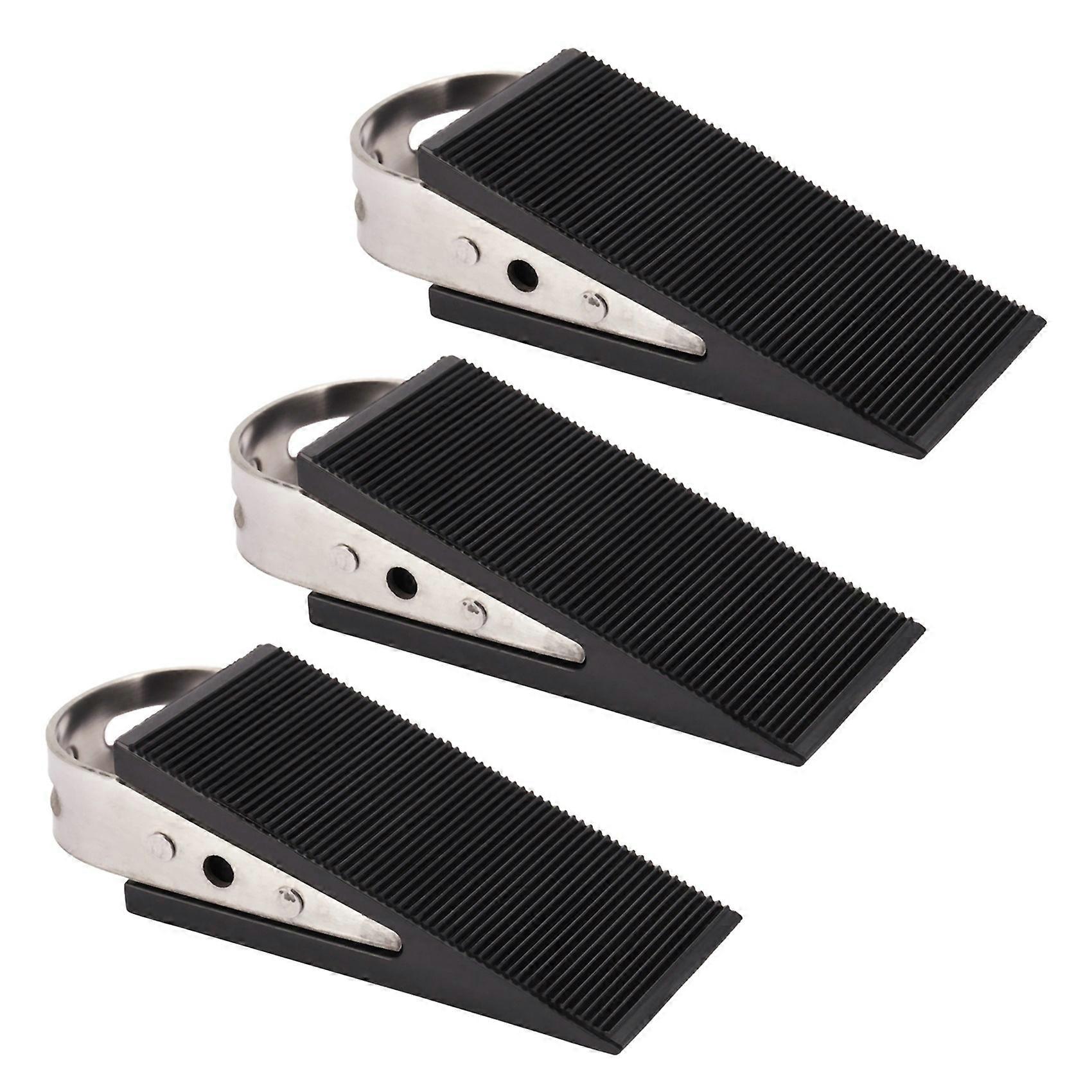 Excellent quality with rubber and stainless steel material, and long use life. Rubber bottom anti-skid technology can effect to your children. Convenience and odorless rubber. Easy to use,just put it under the door base and no need to complex installation. Wedge as a gift .One payment and you have two door stopper. Type:Door Stops Color:black+silver Material:rubber+stainless steel Package Contents: 3 x door stop Only the above package content, other products are not included. Note: Light and different displays may cause the color of the item in the picture a little different from the real thing. The measurement allowed error is +/- 1-3cm.