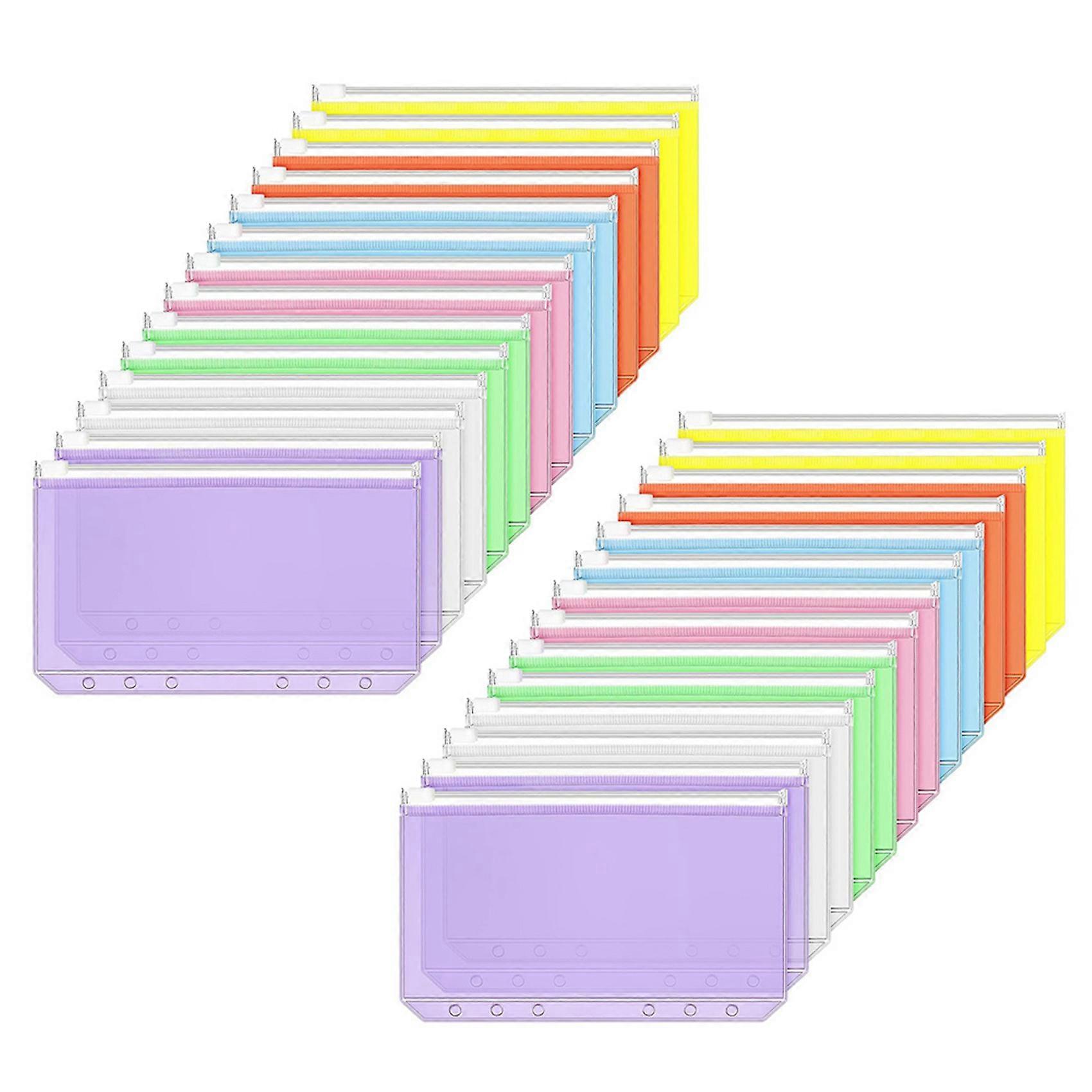 28 Pieces Binder Pockets A6 Size 6 Holes Binder Zipper Folders Waterproof PVC Loose Leaf Bags for 6-