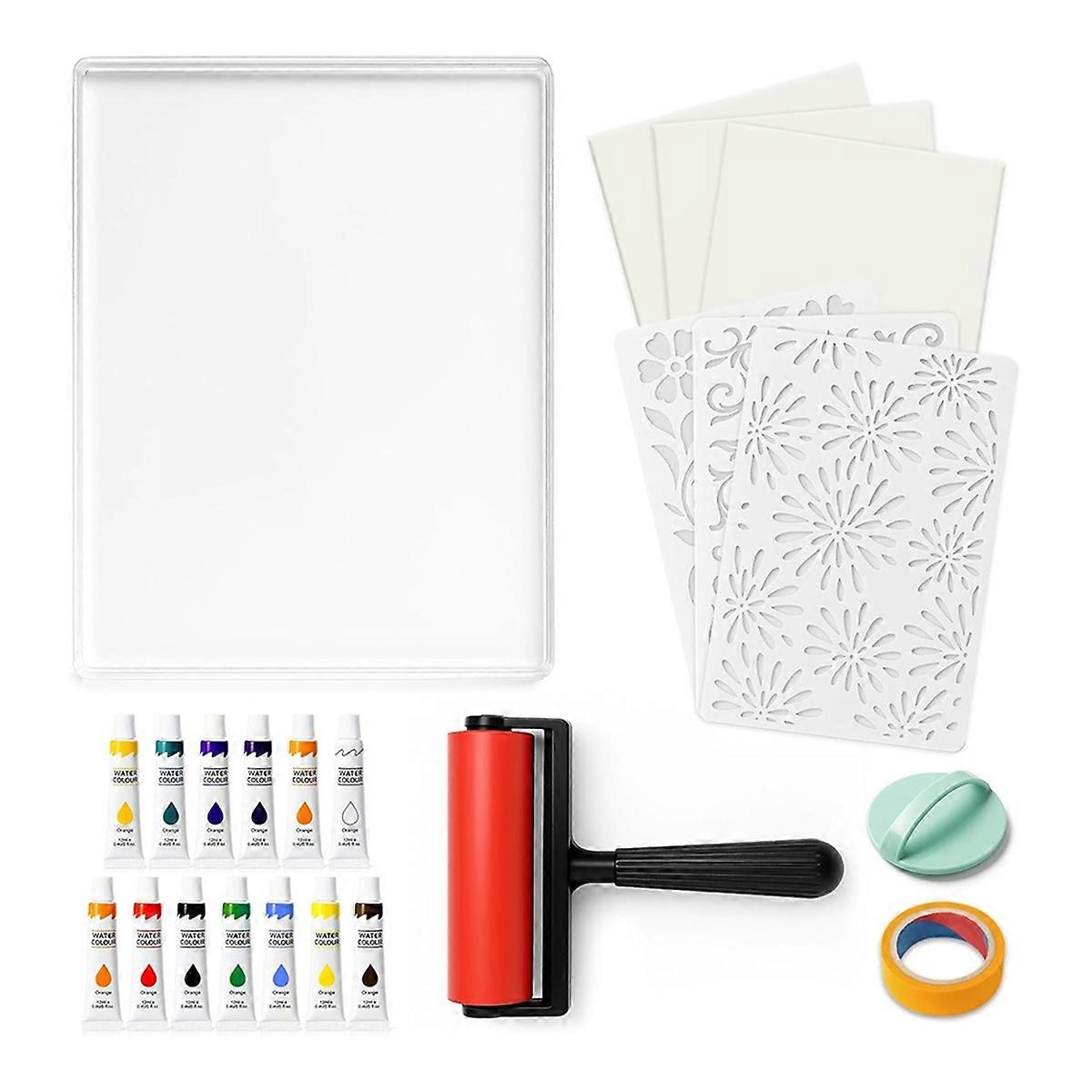 8x10inch Gel Plate Kit, Set with Gel Printing, Rubber Roller, Watercolor Paints, Stencils,for Card