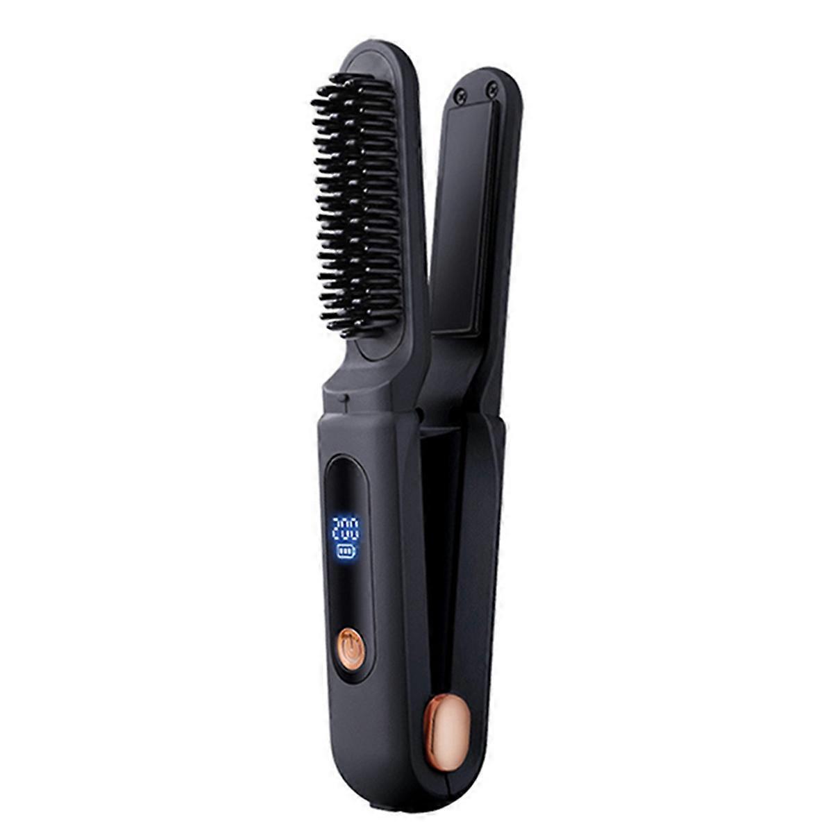 Battery Included: Yes - Enjoy the convenience of cordless usage with our included long-lasting battery, perfect for styling . No need to worry about finding an outlet, giving you the freedom to perfect your look anytime, anywhere. High-concerned Chemical: None - Our hair straightener is crafted without the use of any high-concern chemicals, ensuring a safe and eco-friendly product. Perfect for those who are health-conscious and prefer products that are gentle on the hair and environment. Portable: Mini hair straightening combs are and small in size, so they are easy to store and carry, you can put them in your bag when traveling. Digital display design: This wireless hair straightening comb adopts a digital display design, which can intuitively understand the temperature of the hair straightening comb. Product Features: This 2 in 1 Digital Straightening Comb offers three adjustable temperature settings to suit various hair types and styles. Whether you need a quick touch-up or a thorough styling session, this flat iron is your go-to tool for achieving silky, smooth hair. Anti-scald: The mini hair straightening comb has an anti-scald body and an anti-scald shell, which is easy to operate and to use. Battery capacity: 3500mA Rated power: 60W Size: 230x45x35mm Temperature range: 160/180/200 degrees Celsius Color: Black Material: plastic Package Contents: 1x 2 in 1 Digital Straightening Comb Only the above package content, other products are not included. Note: Light reflection and different displays may cause the color of the item in the picture a little different from the real thing. The measurement allowed error is +/- 1-3cm.