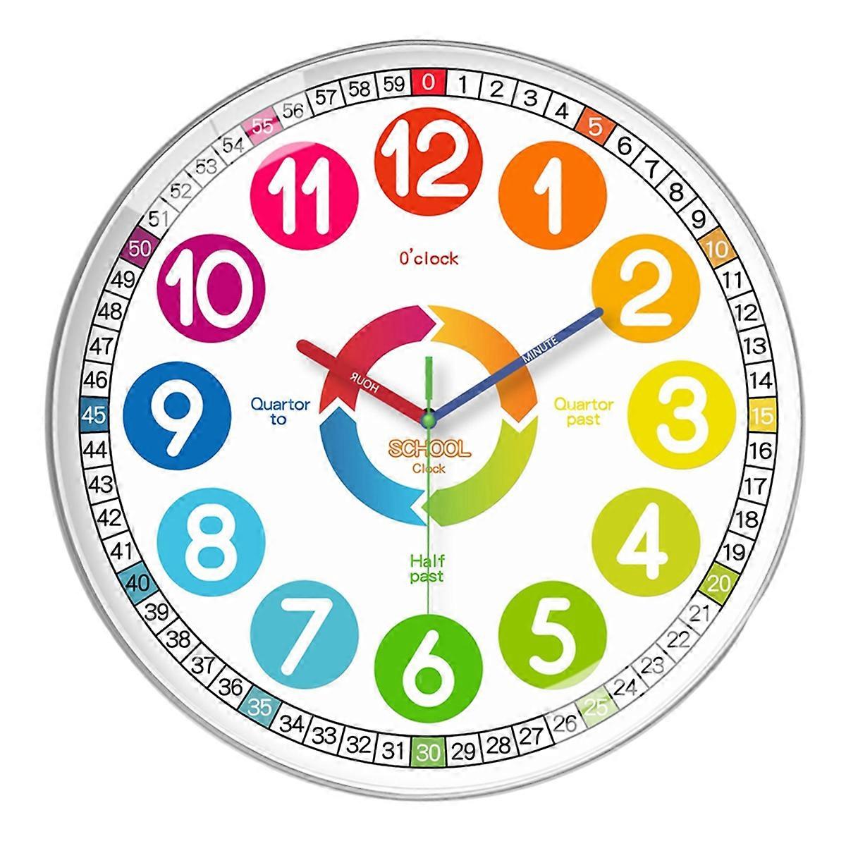 Kids Wall Clock - Non-Ticking, Battery-Operated Time Teaching Clock for Kids, Ideal for Children'S