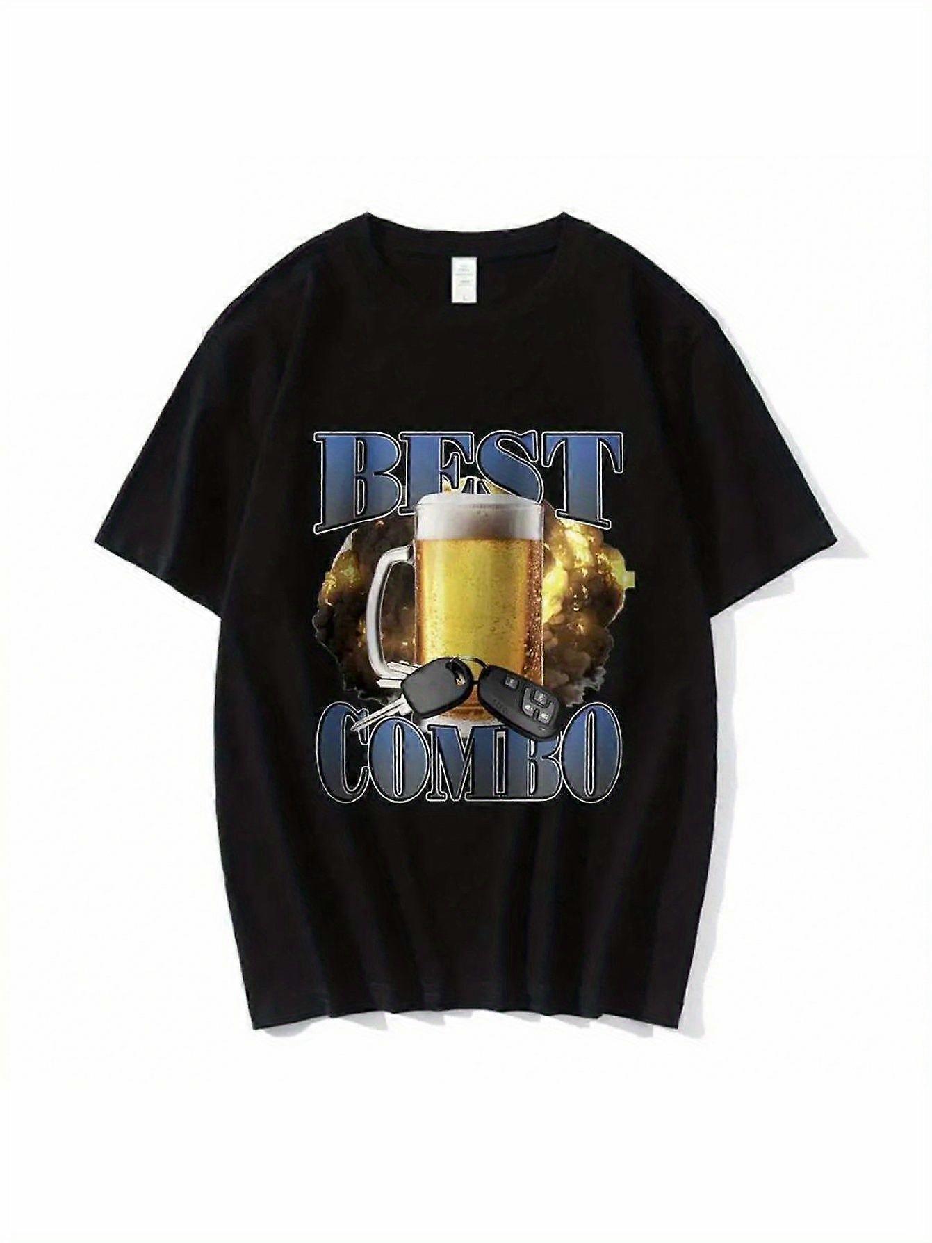 Funny Drinking & Driving Combo Graphic T-Shirt - BEST COMBO Print Beer Mug & Fashion Glasses Design - Black with Blue Text - Heavy-SXVNZ227
