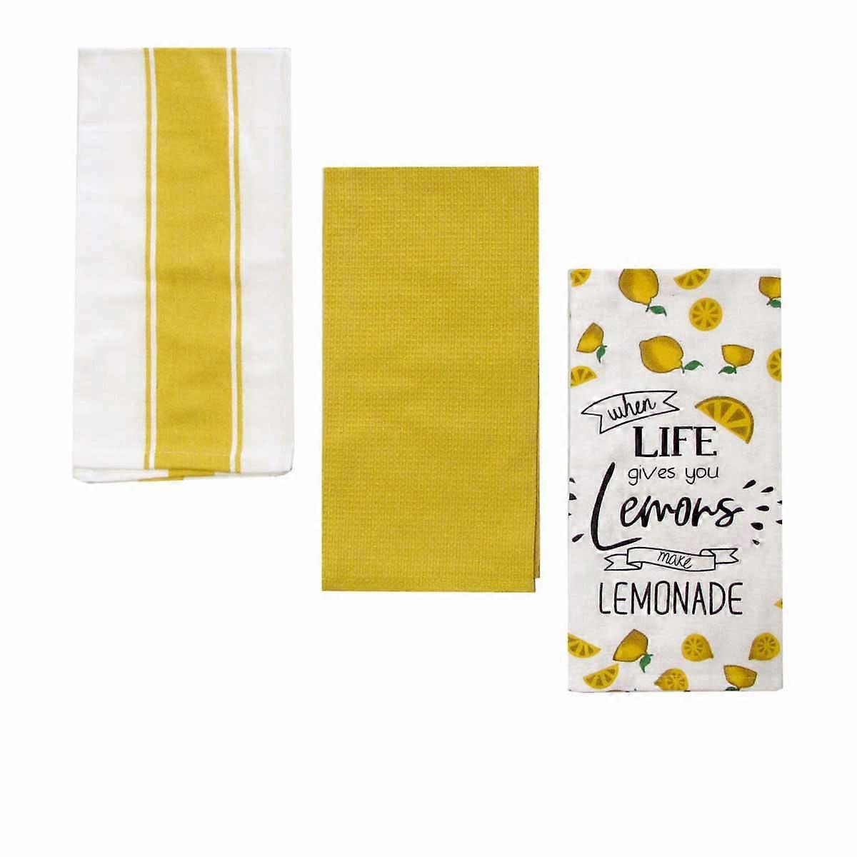 Home Oasis Set Of 3 Printed Cotton Rich Tea Towels 50 X 70 Cm Lemons Yellow Tea Towels & Dishcloths