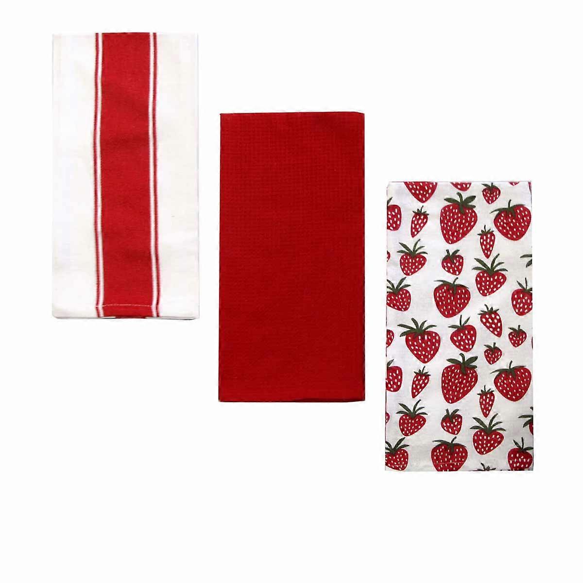 Home Oasis Set Of 3 Printed Cotton Rich Tea Towels 50 X 70 Cm Strawberry Red Tea Towels & Dishcloths