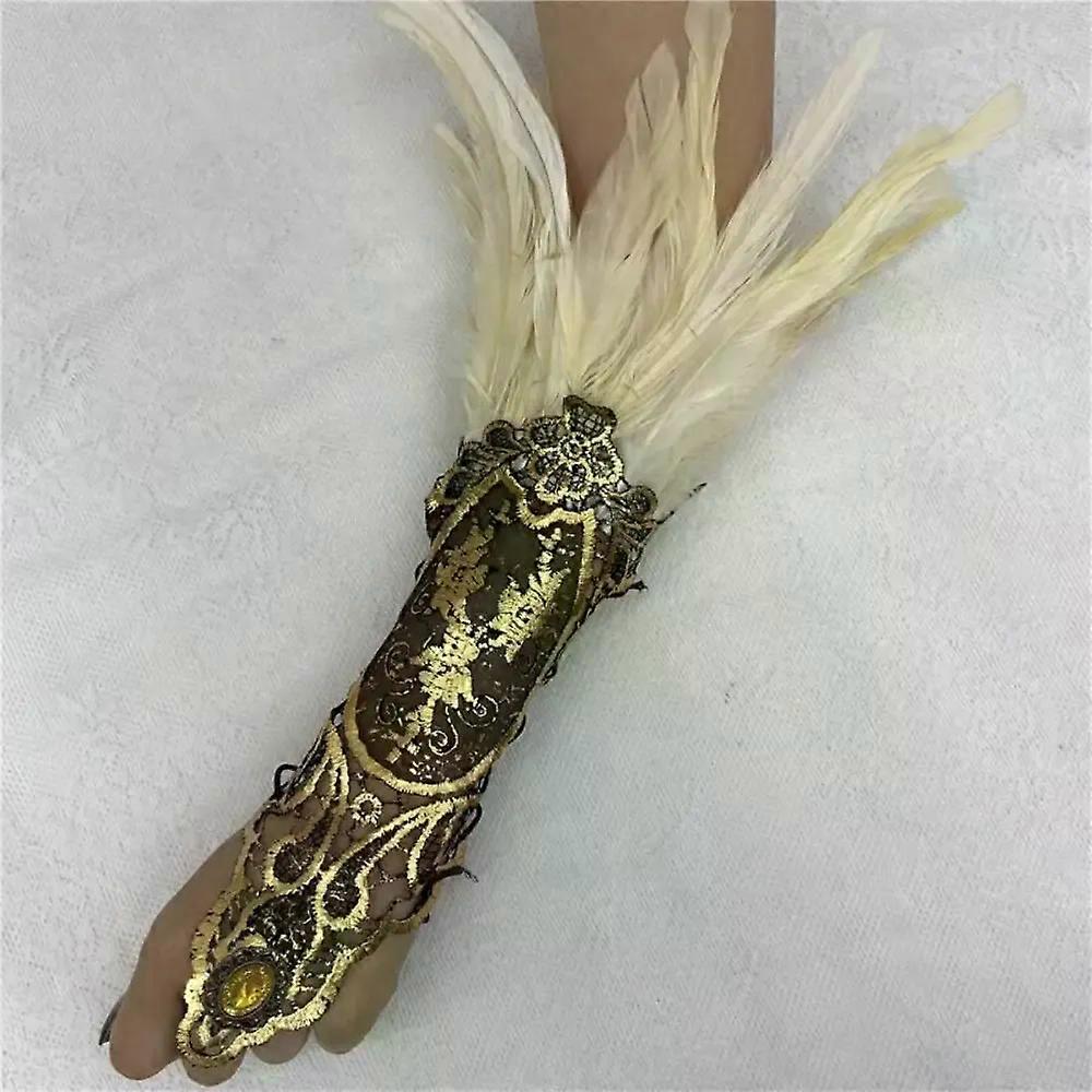 Creative Witch Halloween Feather Gloves Embroidery Retro Women Feather Lace Glove Dark Gothic Halloween Feather Cuffs Carnival