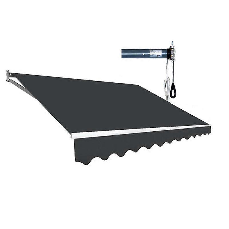 Frame: Powder-Coated Aluminium Shade: 100 Polyester 300-Gsm Fabric Fabric Weight: 280G/M2 Accessories: Owner's Manual Motor Wall Brackets And Hand Crank Colour: Grey Dimensions: 3.0 M X 2.5 M Usage: Patios Gardens Over Doors And Windows Or On Balconies Optional Manual Operation With Its Included Hand Crank Note: The Fixings Supplied Are For Brick Walls And Concrete Walls Only. For Other Structural Fixing Please Contact Your Local Q