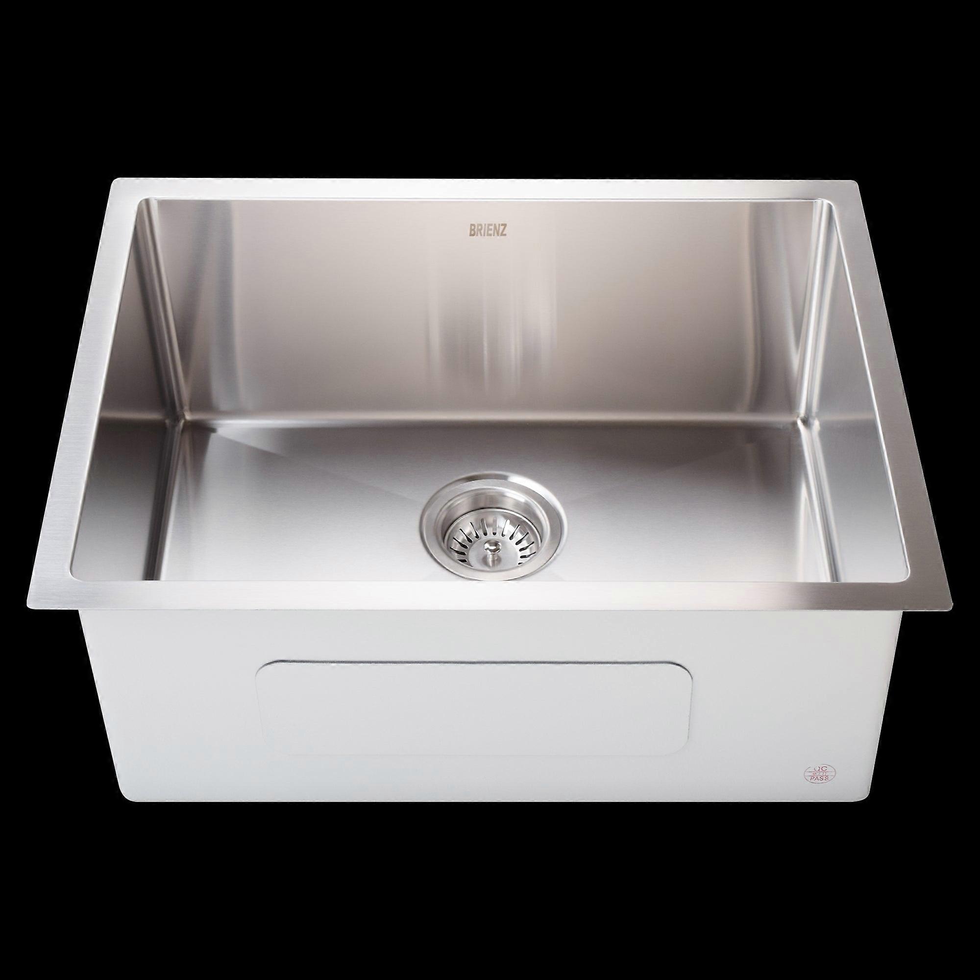 Single Sink With Bowl Dimensions Of 550 X 400 X 250 Mm (L X W X D) Generous 55L Capacity For Versatile Use Hand-Made 1.5Mm-Thick Type 304 Stainless Steel Construction For Durability And A Brilliant Finish Undermount Or Topmount Installation With Included Brackets 5 Layers Of Sound Padding Reduce Noise For Quieter Use Clips And Cut-Out Template Included For Easy Installation 90Mm Drain Opening With Strainer Waste Included Clean Modern Styling With Brushed Stainless Steel Finish Specifications: