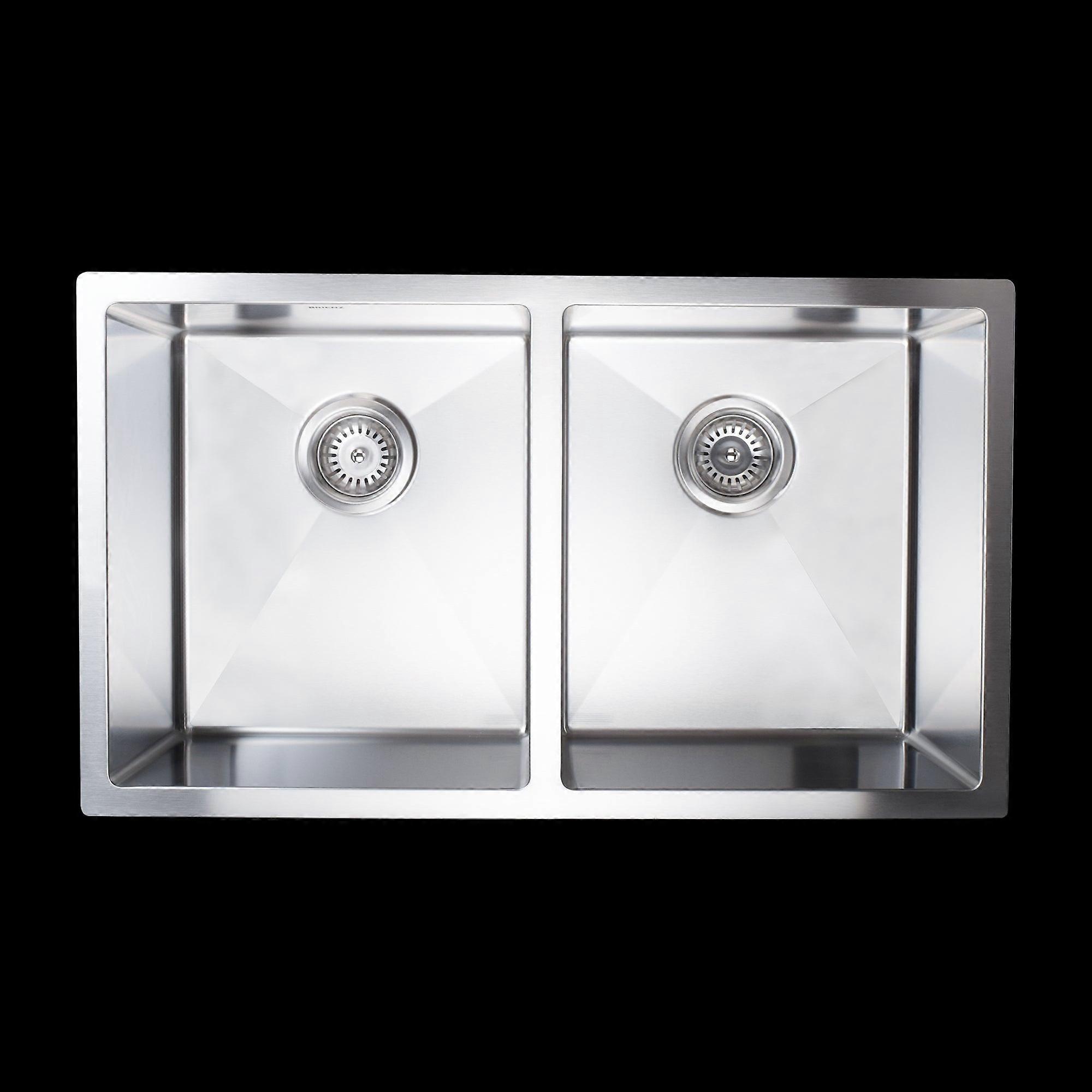 Double Sink Design With Bowls Measuring 350 X 400 X 250 Mm (L X W X D) Generous 70L Capacity For Versatile Kitchen Or Laundry Use Hand-Made 1.5Mm-Thick Type 304 Stainless Steel For A Brilliant Long-Lasting Finish Can Be Installed As Either Undermount Or Topmount Sound Padding Reduces Noise For Quieter Use Includes Clips And Cut-Out Template For Easy Installation 90Mm Drain Opening With Strainer Waste Included Modern Clean Styling To Complement Any Interior Specifications: