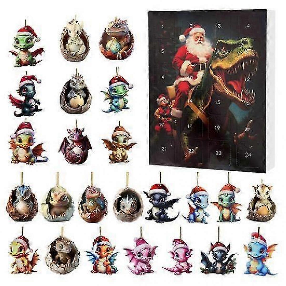 2025 Christmas Advent Calendar Cartoon Dinosaur Baby Toys Set 24 Day Christmas Countdown Acrylic Pendant Calendar