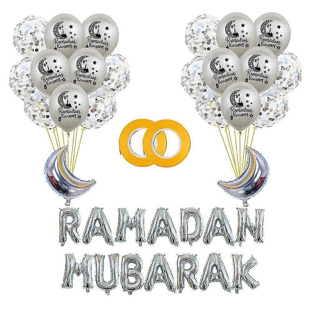 38 Pieces Silver Muslim Ramadan Latex Confetti Balloons Letter Printed Balloons Foil Balloons Decorations Set