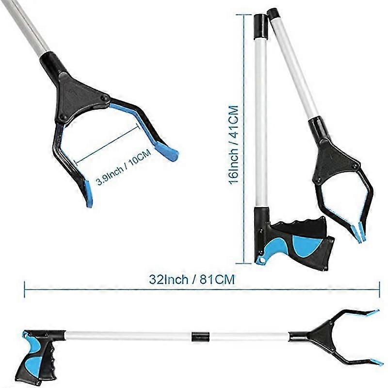 32" Folding Pickup Tool Aluminum Reach Auxiliary Rotatable Rubber Grip Elder Long Arm Extender