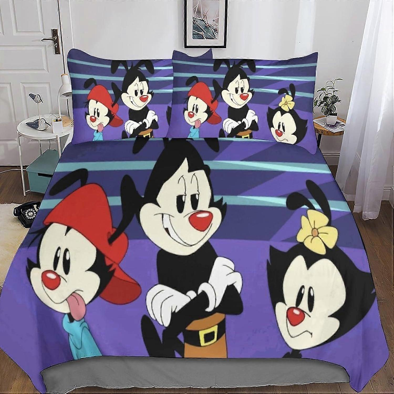 A95 Animaniacs Bedding Set Cover Duvet Cover 3D Bedspread 3 Pieces Animated Comedy Quilt Cover with Zipper Closure Soft Microfiber for Kids Children D