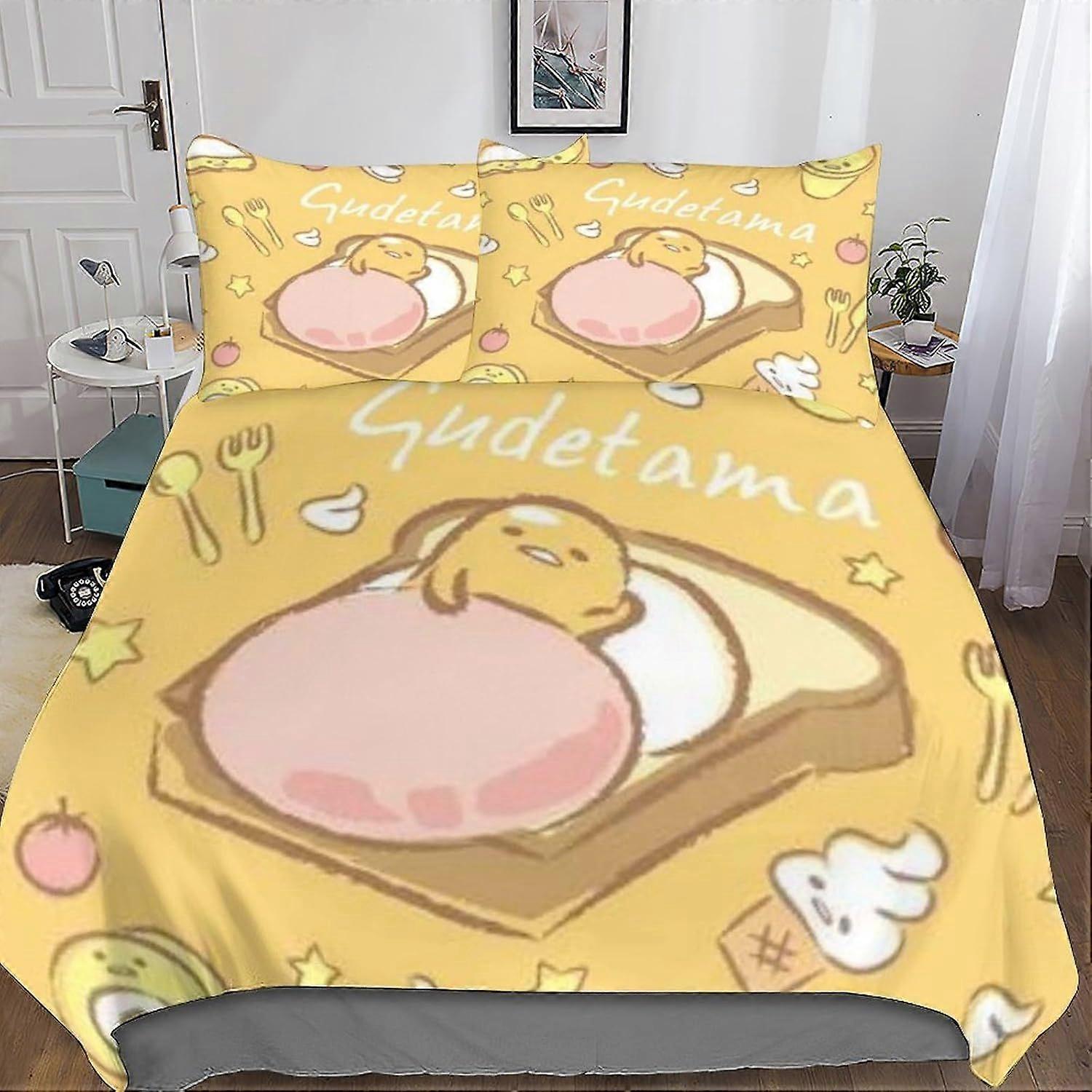 A182 Gudetama Bedding Set Duvet Cover Set for 3D Printed 3 Pieces Soft Breathable Cartoon Animation Comforter Cover Quilt Cover with Pillowcases Doubl