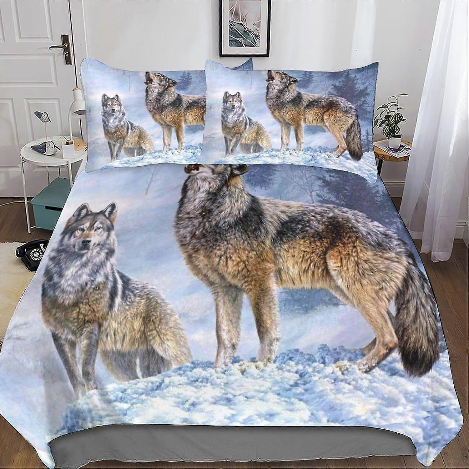 A283 Wolf Bedding Set Cover Duvet Cover 3D Bedspread 3 Pieces Animal Quilt Cover with Zipper Closure Soft Microfiber for Kids Children Double B283