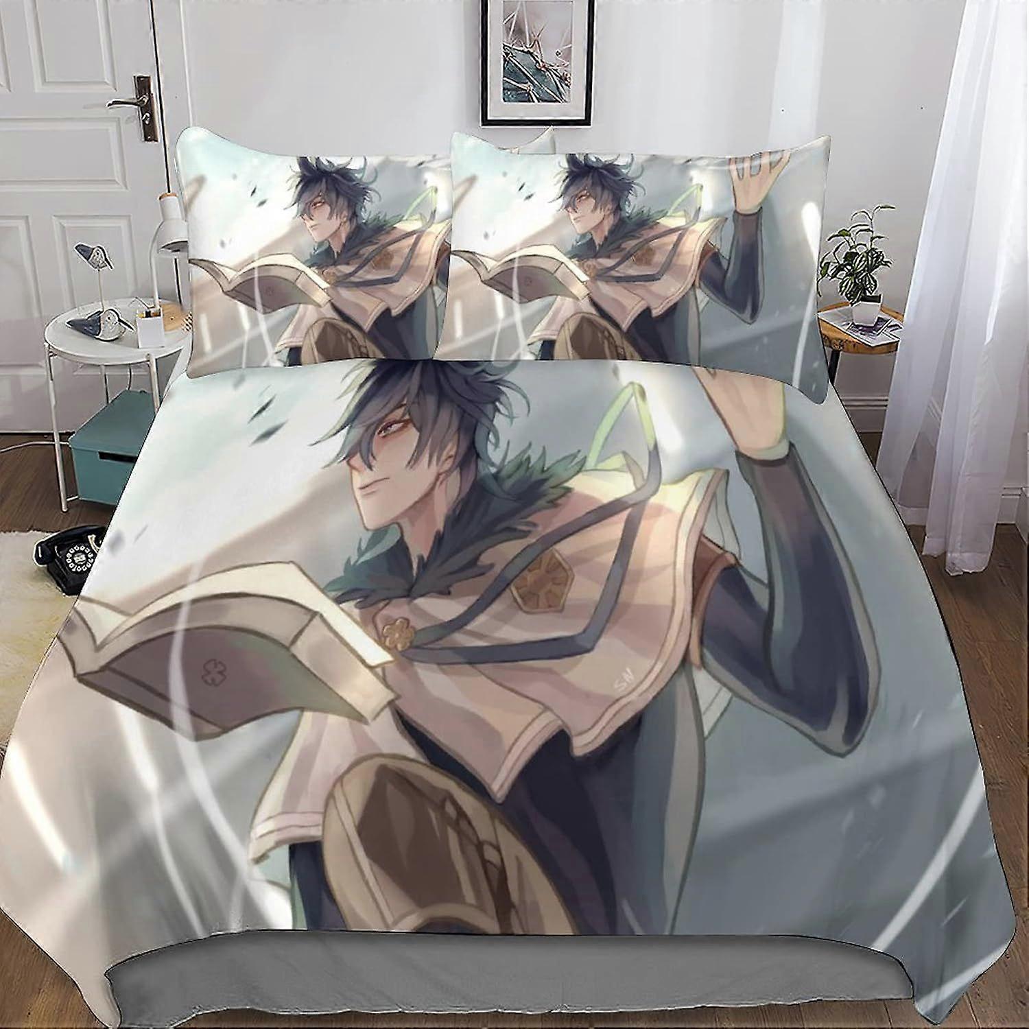 A313 Black Clover Duvet Cover Set 3D Printed,Soft Microfiber Magician Quilt Cover 3 Pieces with Zipper Closure Bedding Set And Pillwocase Suitable for