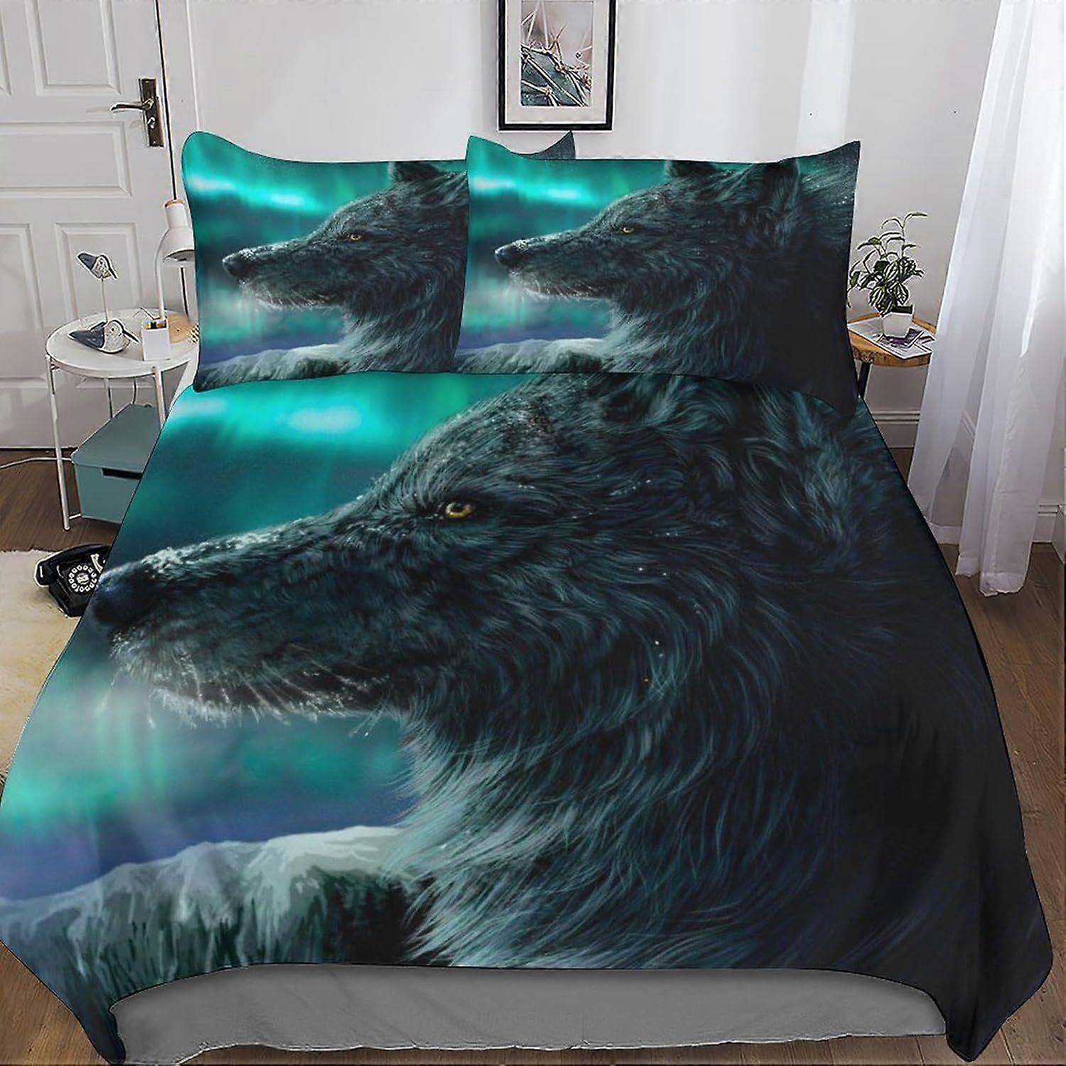 A286 Wolf 3D Printed Duvet Cover Set Soft Microfiber Animal Quilt Cover 3 Pieces with Zipper Closure Comforter Cover And Pillwocase Quilt Bedding Set