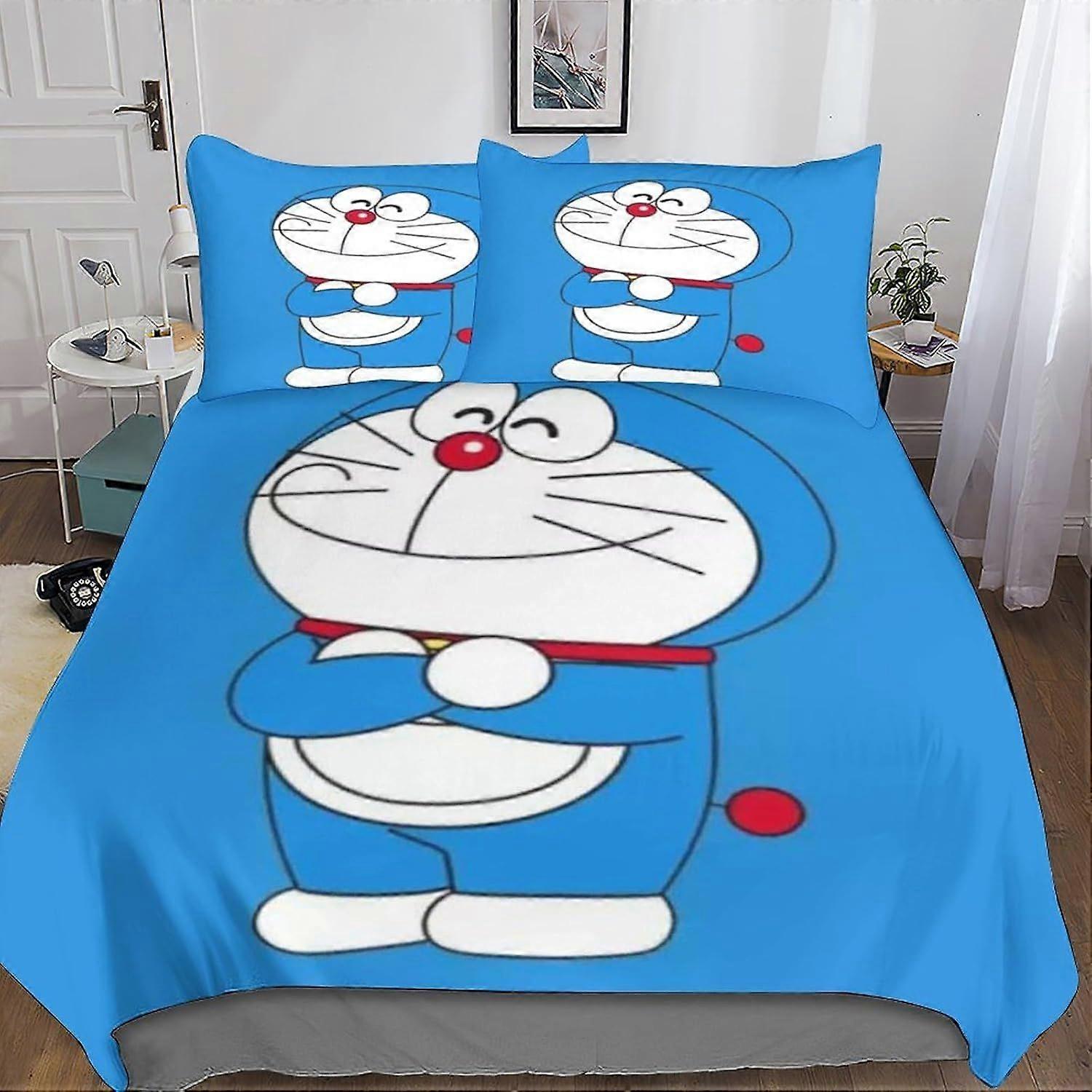 A146 Doraemon Duvet Cover Sets - 3D Quilt Cover,Cartoon Comforter Cover Bedding Set for Kids Boys And Girls 3 Pieces Set with Zipper Closure Soft Micr