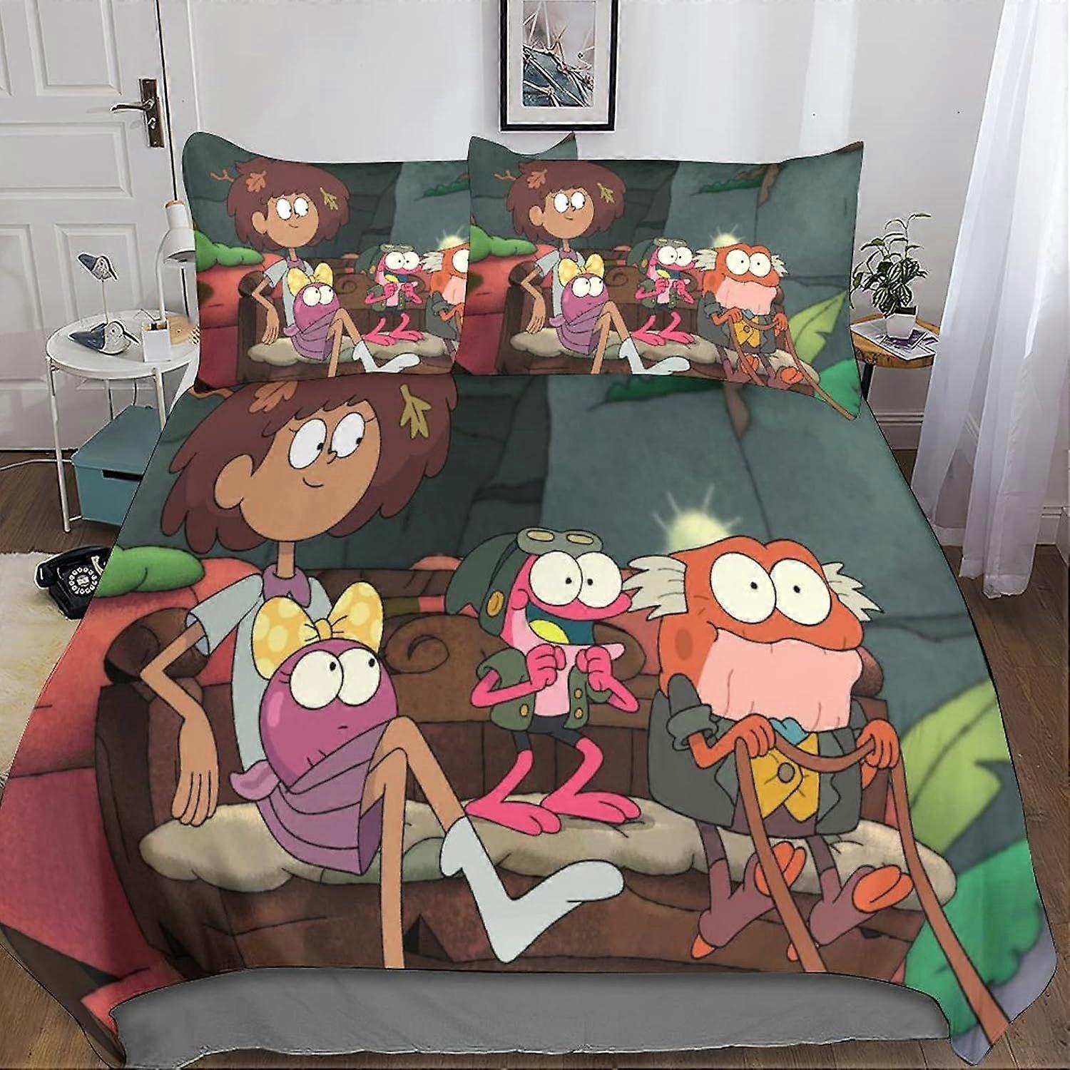 A537 3 Pieces Amphibia Duvet Cover,3D Anne Boonchuy Printed Bedding Set,Pillowcases,Hidden Zipper,Microfiber Quilt Cover,for Children Youngsters And A