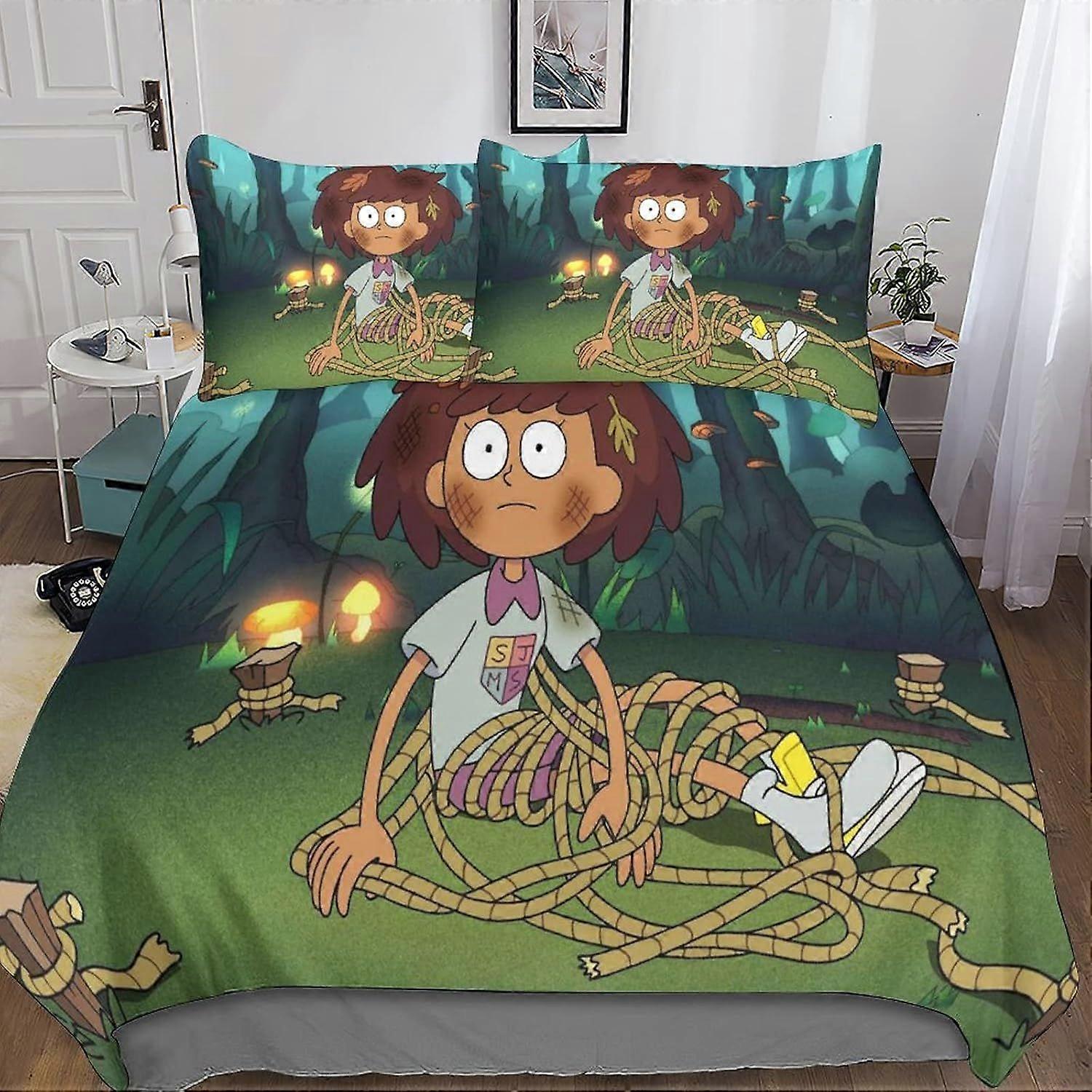 A538 Amphibia Bedding Duvet Cover Set,3D Anne Boonchuy Print Quilt Cover Bedding Sets,Microfibre Duvet Cover Set with Pillowcases 3 Pieces,for Childre