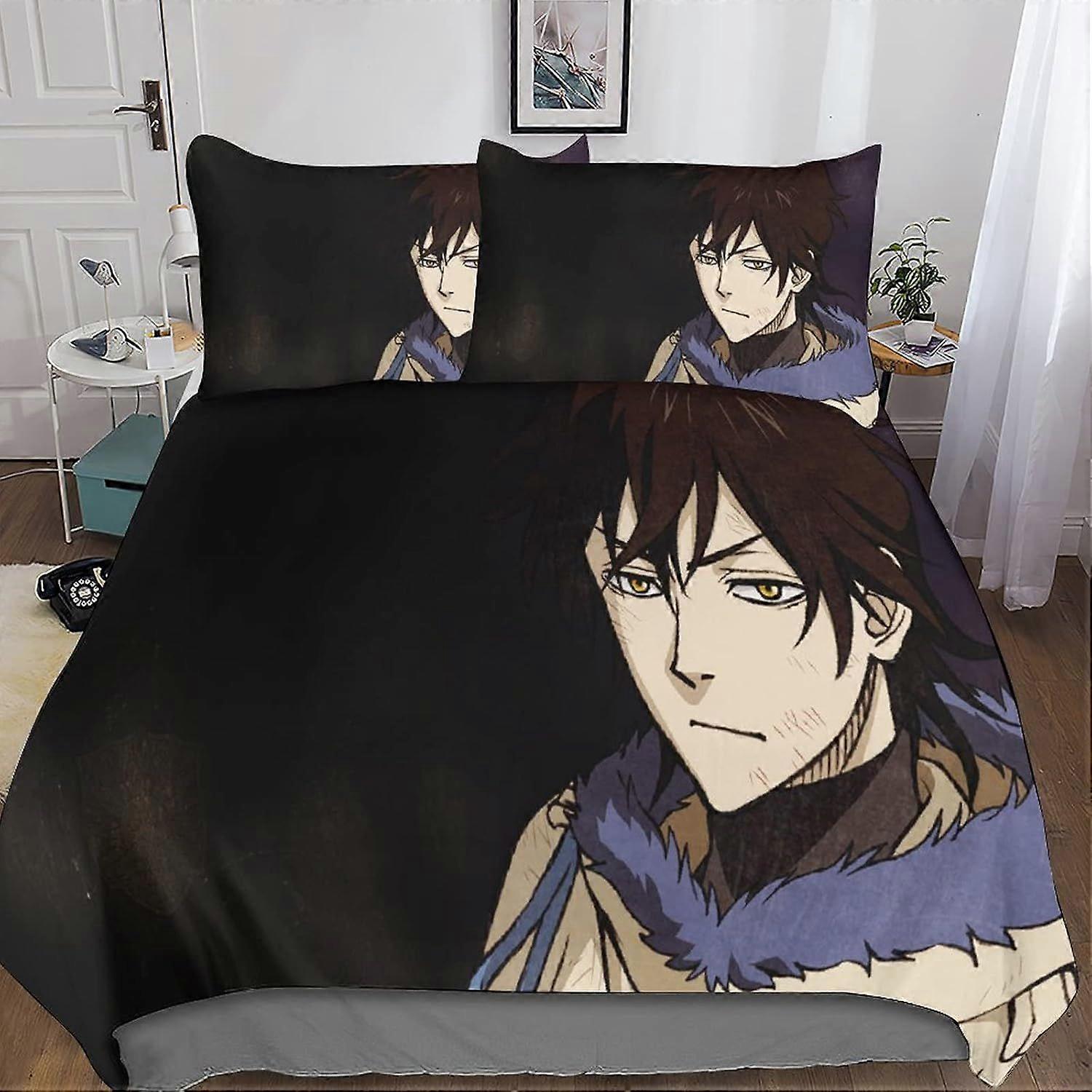 A326 Black Clover Duvet Cover Set 3D Printed,Soft Microfiber Magician Quilt Cover 3 Pieces with Zipper Closure Comforter Cover And Pillwocase for Chil