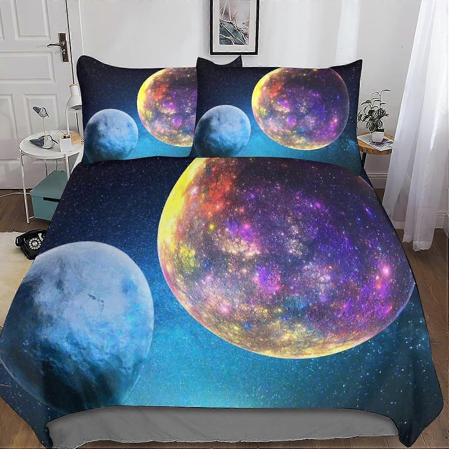 A329 Duvet Cover Set 3D Cosmic Bedding Set Microfiber Galaxy Star Comforter Cover with Pillow & Zipper,Soft 3 Pieces for Childrens And Adults Double B