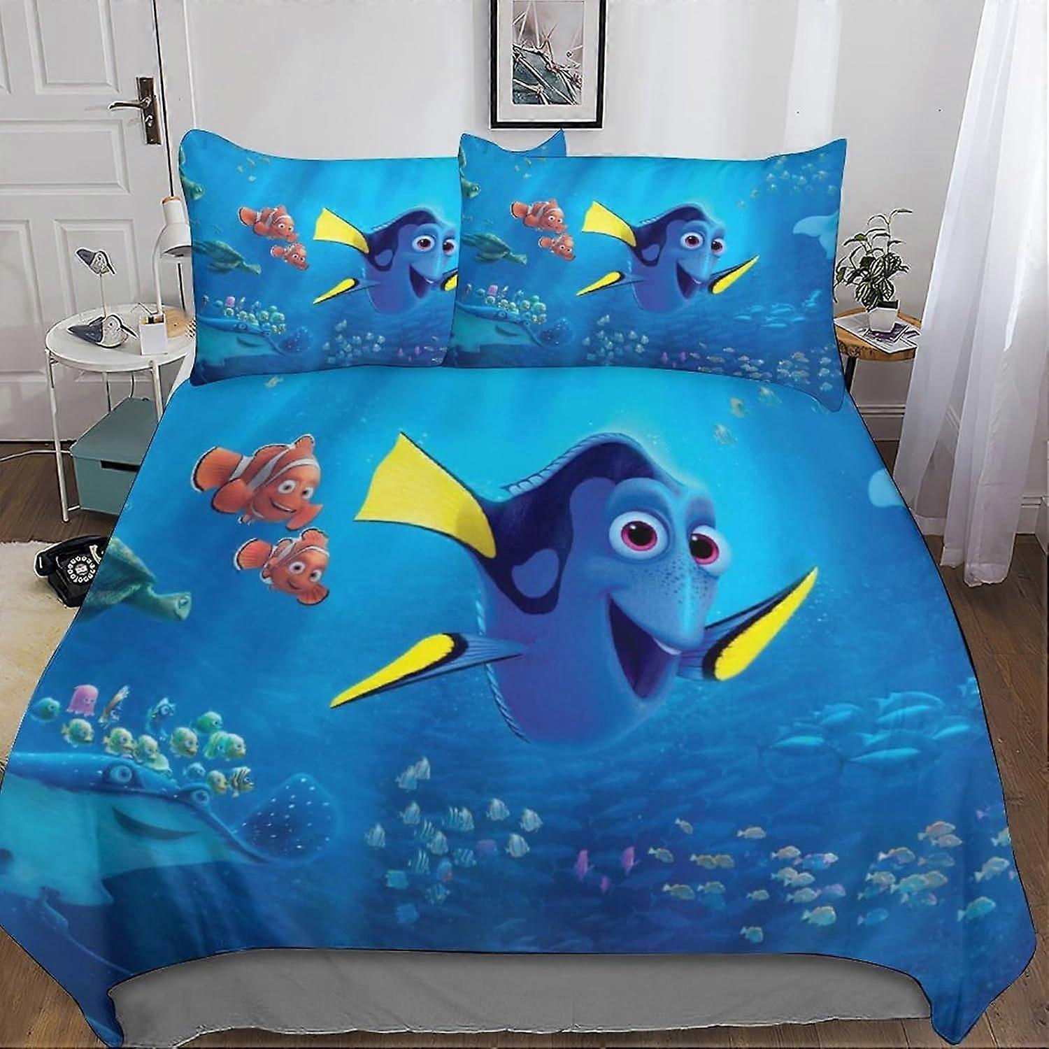 A382 Finding Nemo Duvet Cover Microfiber Bedding Set, 3D Print Duvet Finding Dory Quilt Cover&Pillowcase,With Zipper Closure, Soft Comforter Cover for
