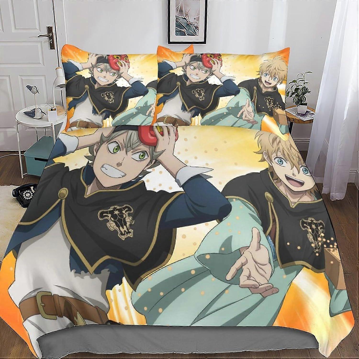 A319 Black Clover Duvet Cover Set 3D Printed,Soft Microfiber Magician Quilt Cover 3 Pieces with Zipper Closure Comforter Cover And Pillwocase for Chil