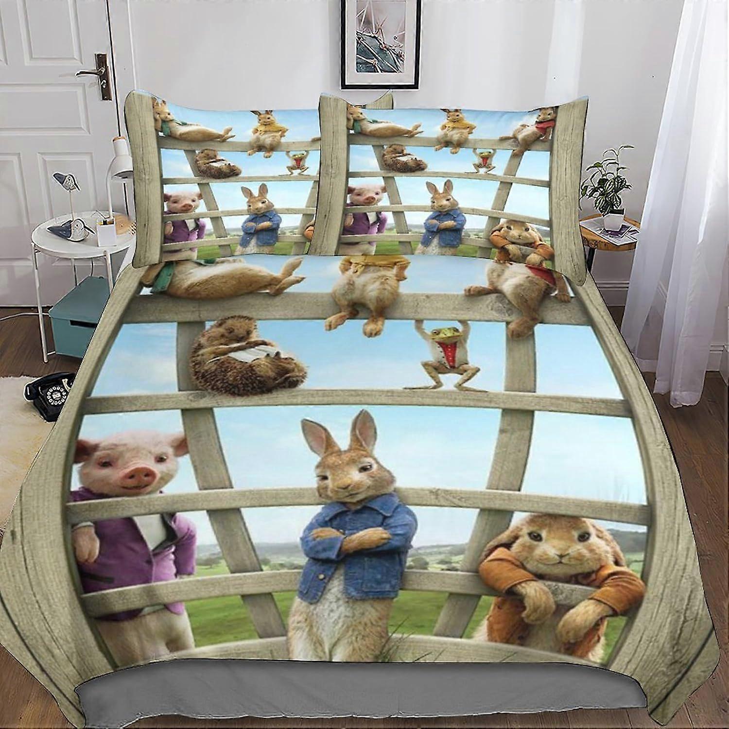 A14 Peter Rabbit Bedding Set Duvet Cover Set with Zipper Closure,movie Characters Quilt Cover Set for Teen Kids Boys Girls Adult, Durable Microfiber 3