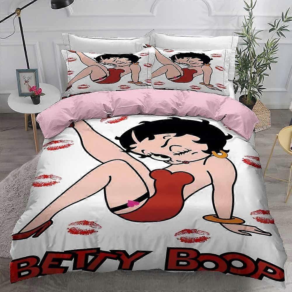 A639 Ste-X Bedding , BETTY BOOP Duvet Cover Set and 2 Pillowcases , 3 Piece Soft Fluffy Bedding Set with Zipper B639