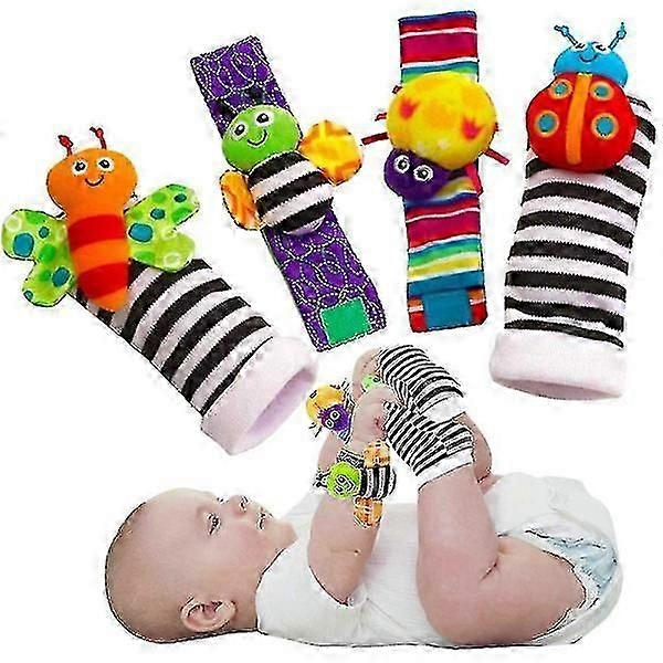 Adorable Animal Baby Socks Set with Wrist Rattles and Foot Finders - 4 Piece Soft Toy Collection