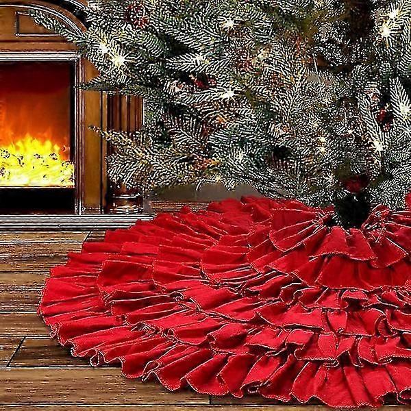 48-Inch Red Ruffled Christmas Tree Mat with 6-Layer Rustic Farmhouse Design for UK