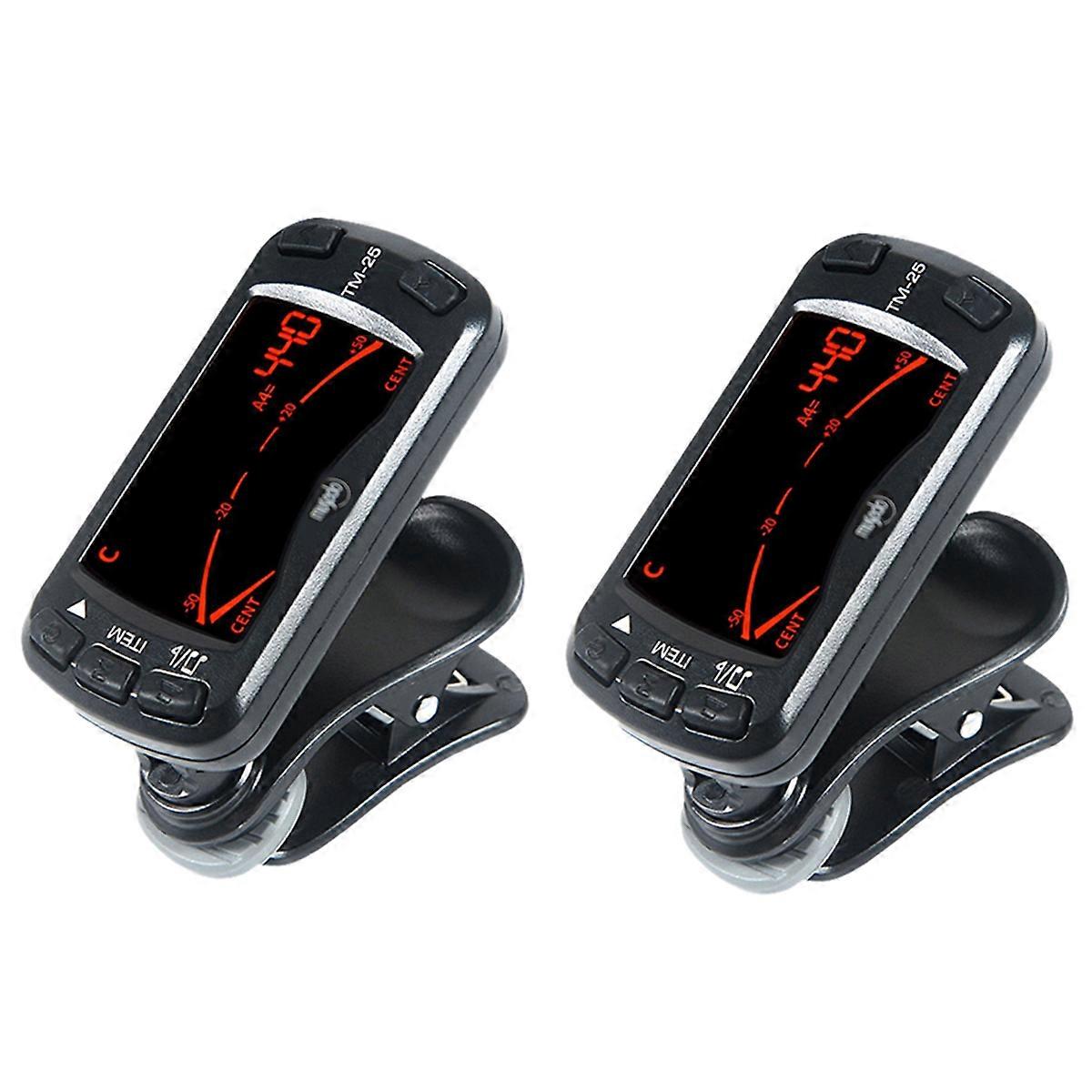 2X Tm-25 Tm25 Clip-on Electric Tuner & Metronome Guitar Chromatic Bass Violin Ukulele Universal Port