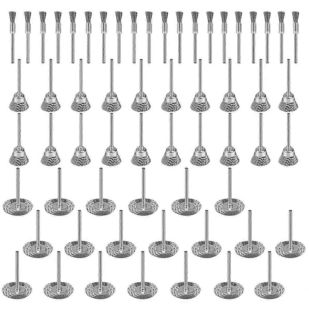 60 Pcs Wire Brushes Set, 3 Shape Steel Wire Wheels Pen Brushes 1/8″ (3mm) Shaft for Removes Burrs, D