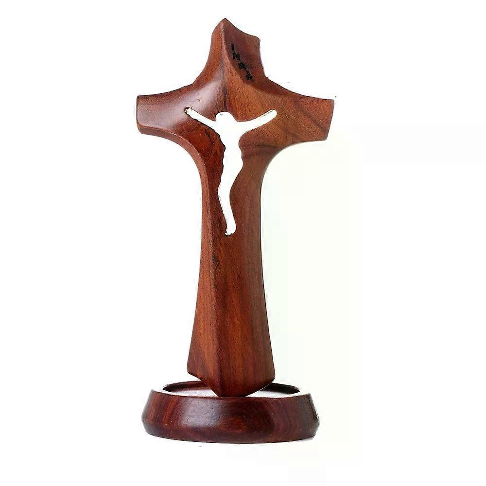 Art Wooden Hollow Cross Detachable Standing Religious Crosses Ornament Vintage with Base Crucifix Sculpture Desktop-11cm