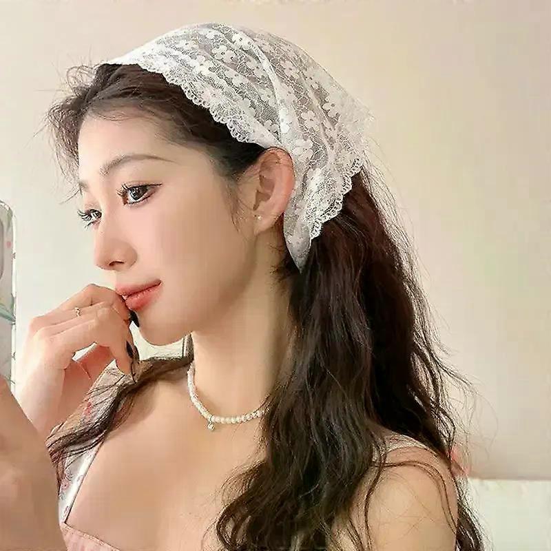 Retro Lace Bandana Headband Print Hair Scarf Bohemia Triangle Headscarf White Hair Bands for Womens Girl Fashion Sweet Kerchief