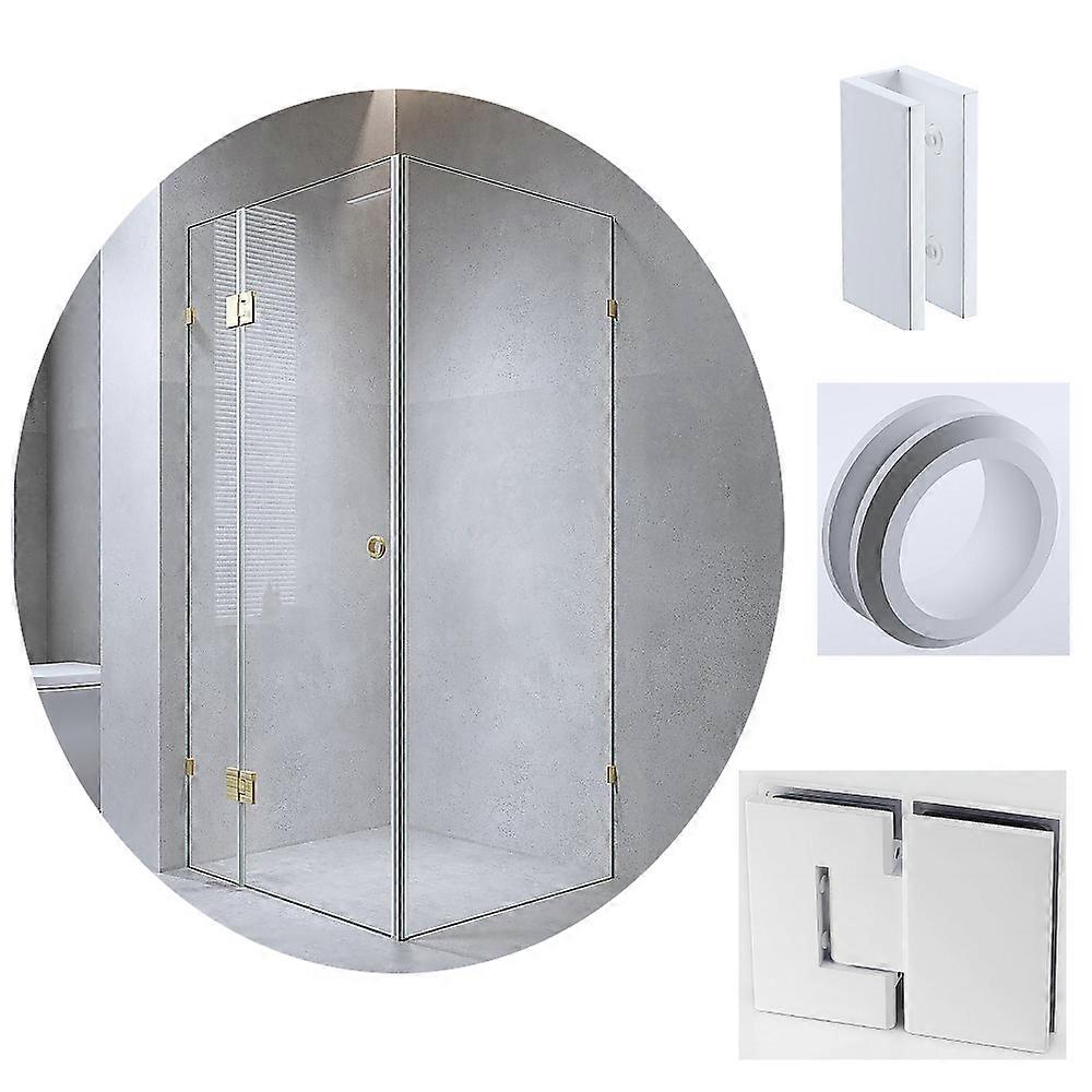 Della Francesca 100X70cm Corner Frameless Shower Screen With White Brackets And Ss Hinges Round Handle Shower Enclosures