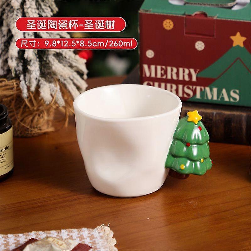 Creative Christmas Ceramic Mug Set 260ML Christmas Tree Snowman Design Couple Gift Box