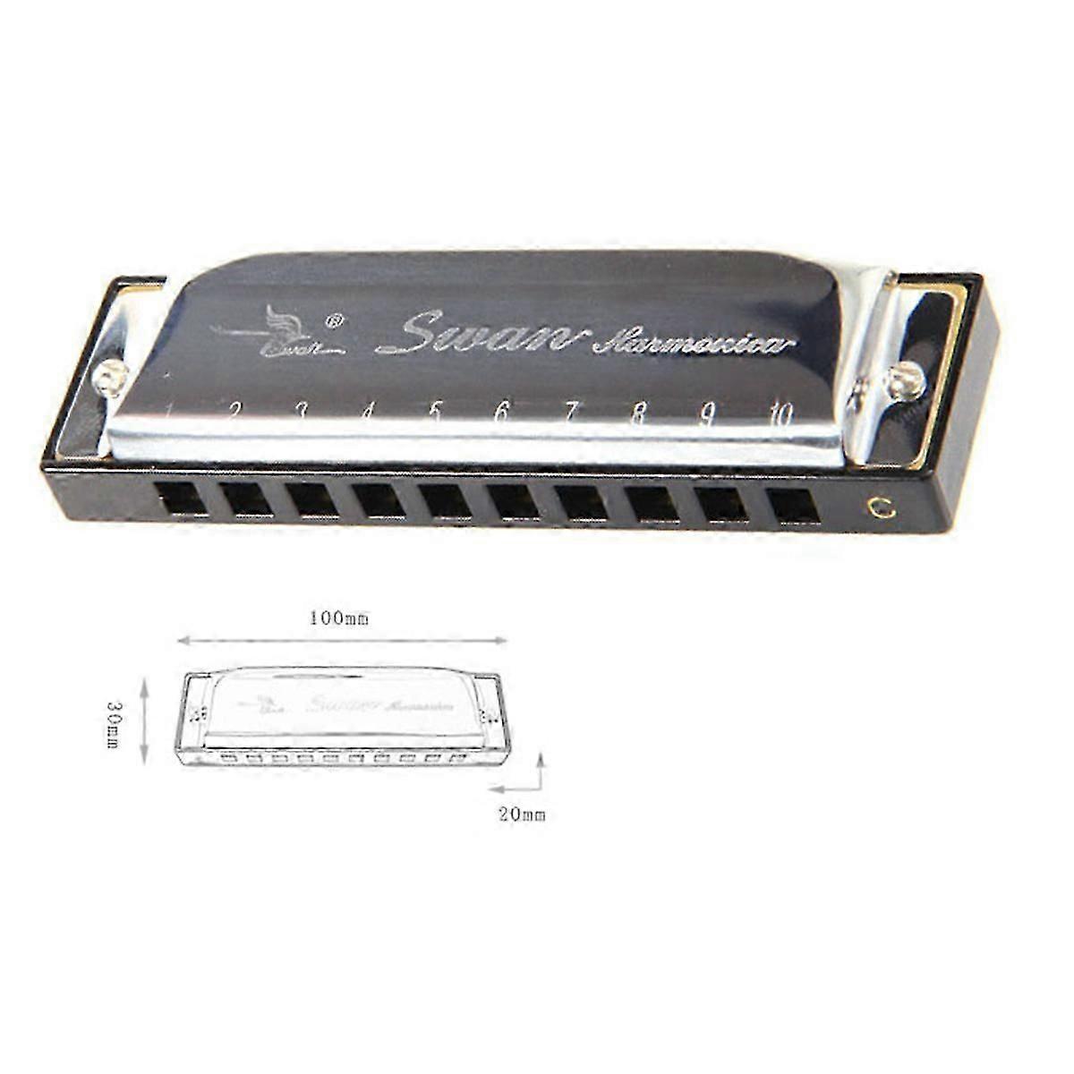 2X Swan Harmonica 10 Holes Key of C SILVER with Case Blues Harp Stainless Steel