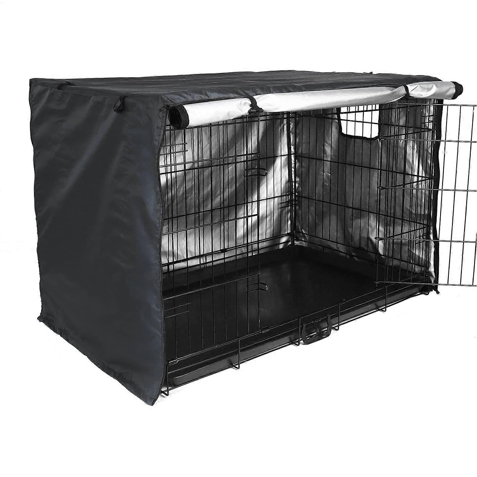 Double Door Dog Crate Cover for 42 Inch Wire Crates, Heavy Duty Oxford Fabric Windproof Pet Kennel Cover for Medium Breeds